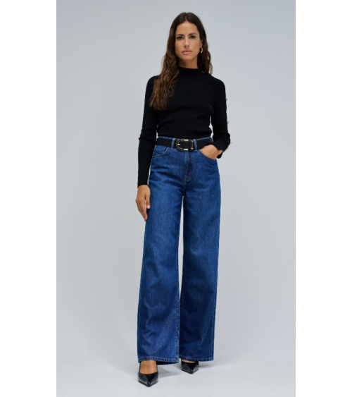 Jersey de punto en color negro, de corte slim que realza la silueta. Con cuello vuelto y manga larga, se distingue por los botones decorativos en los hombros y en las mangas, un detalle elegante que aporta modernidad a la prenda de SALSA JEANS