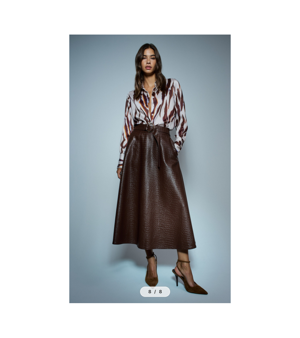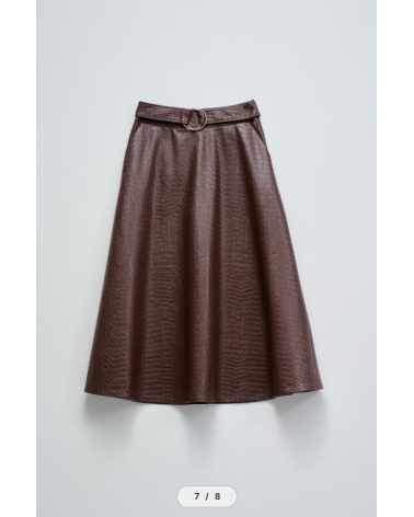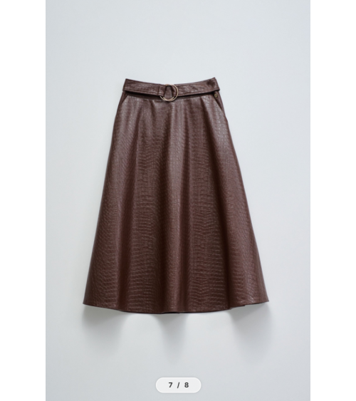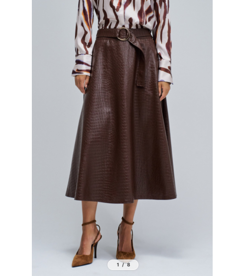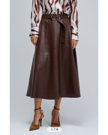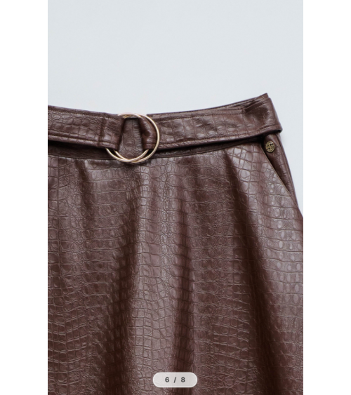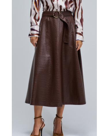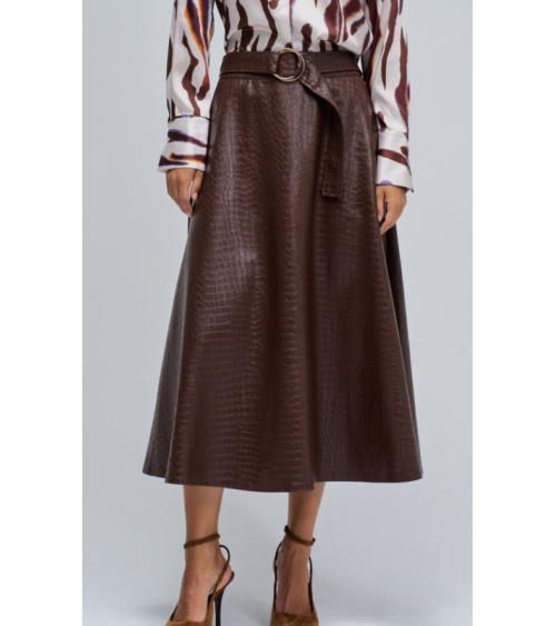 Falda marrón efecto piel cocodrilo cinturón corte regular bolsillos abertura trasera SALSA JEANS