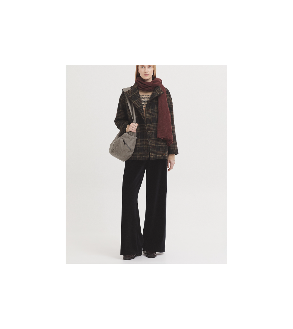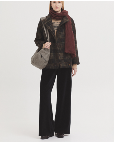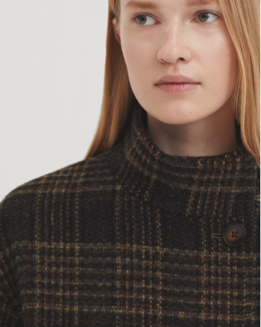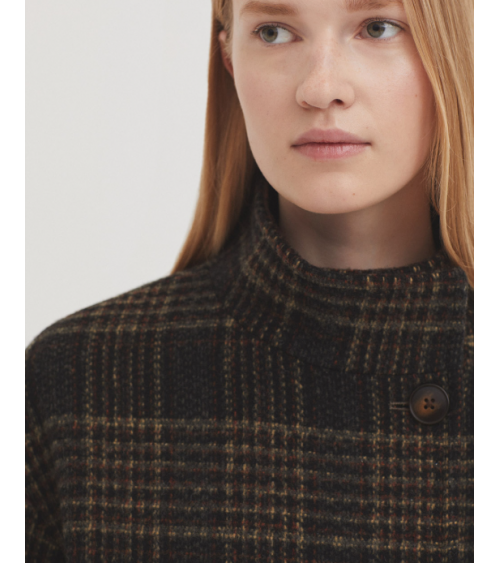 Chaquetón gris/beige tejido cuadros cuello alto espalda con canesú y fuelle NICE THINGS