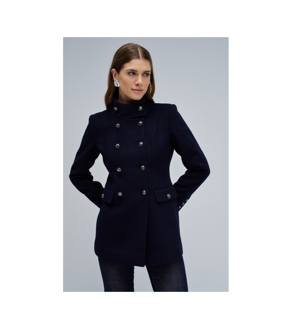 Abrigo paño navy corto corte regular cierre botones traspaso SALSA JEANS