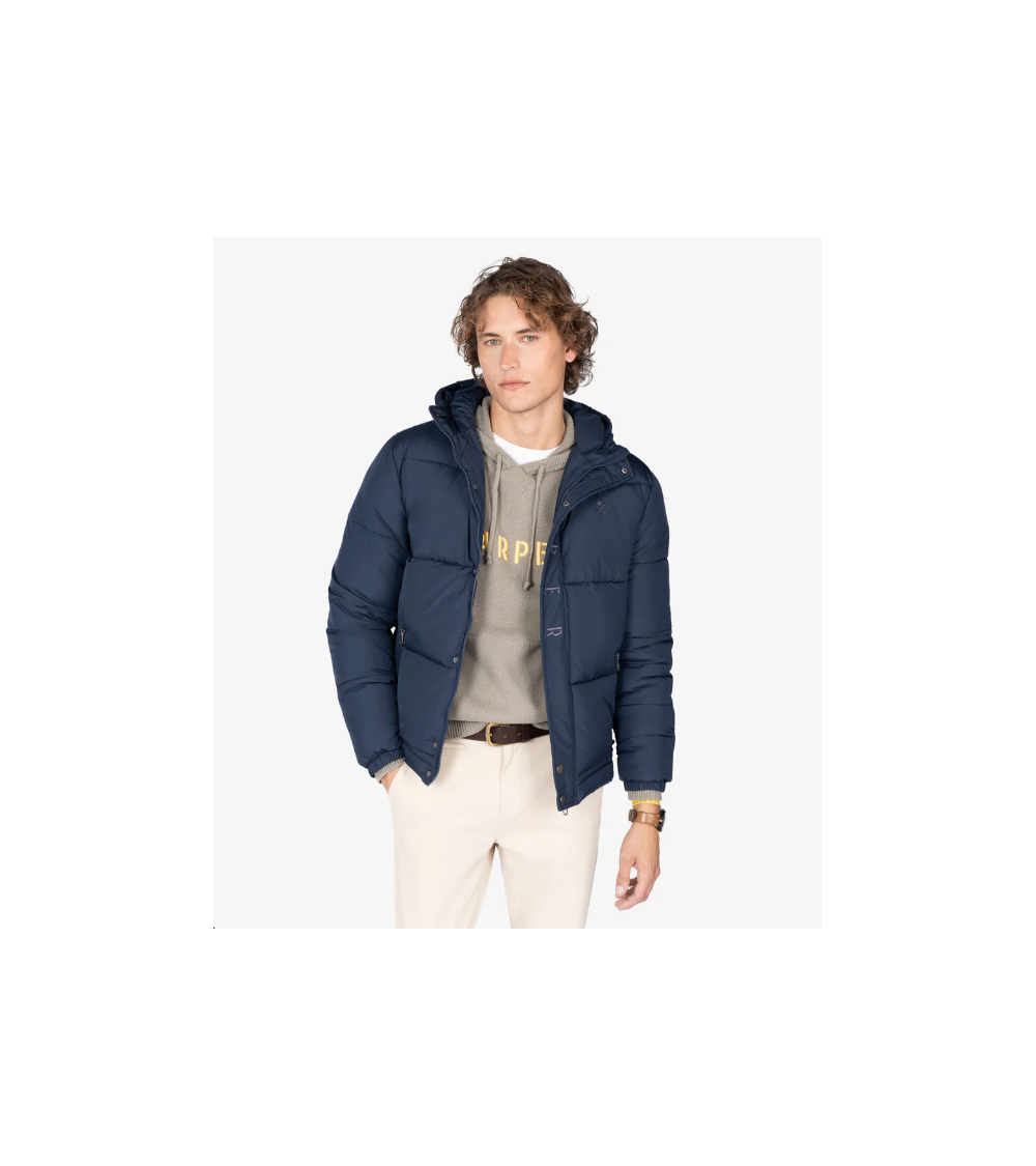 Parka acolchada navy con capucha y tapeta de detalle Harperandneyer.