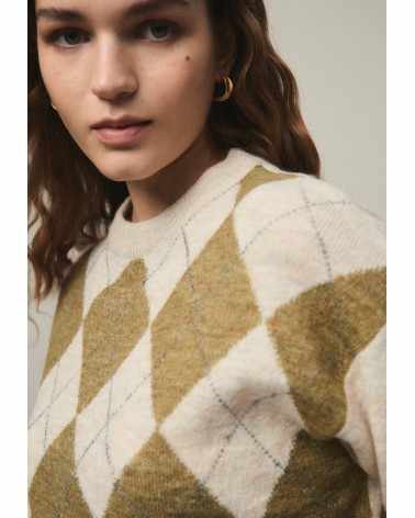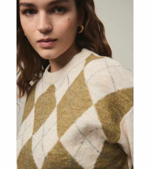 Quick view Añadir a la cesta Lista de deseos Añadir a comparar Jersey beige crudo Humility Precio 129,00 € - Suéter de punto mullido bicolor Humility.- Corte recto- Mangas largas, sisas caídas- Cuello alto- Ribetes lisos en el cuello, puños y bajo del...