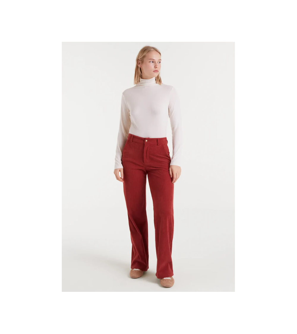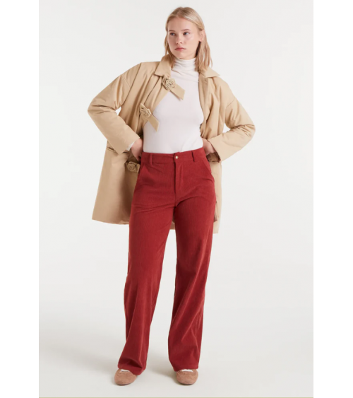 Pantalón pana brown en cintura alta con bolsillos delanteros Compañia Fantastica.