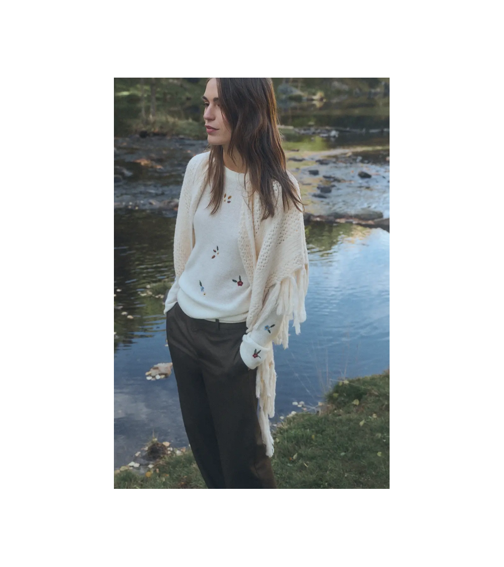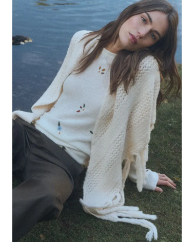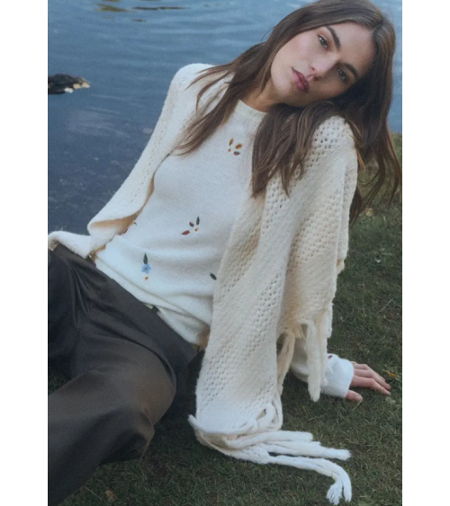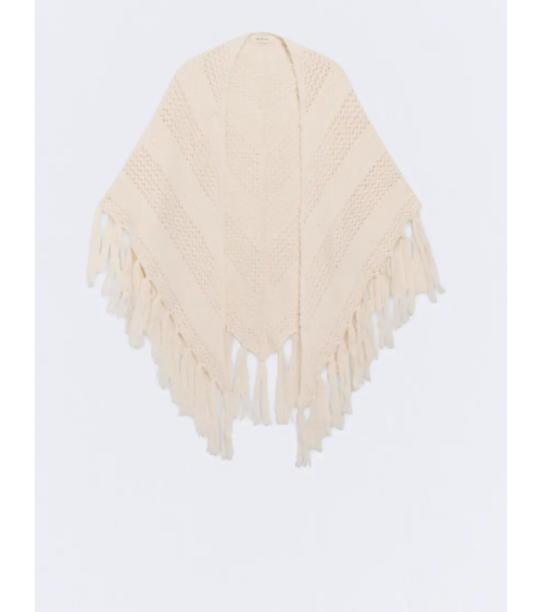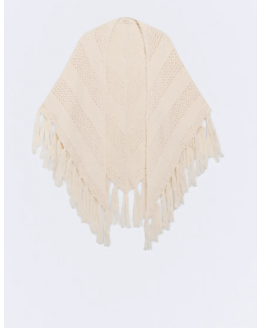 Toquilla en color crudo de punto con dibujo diagonal con flecos de ESEOESE