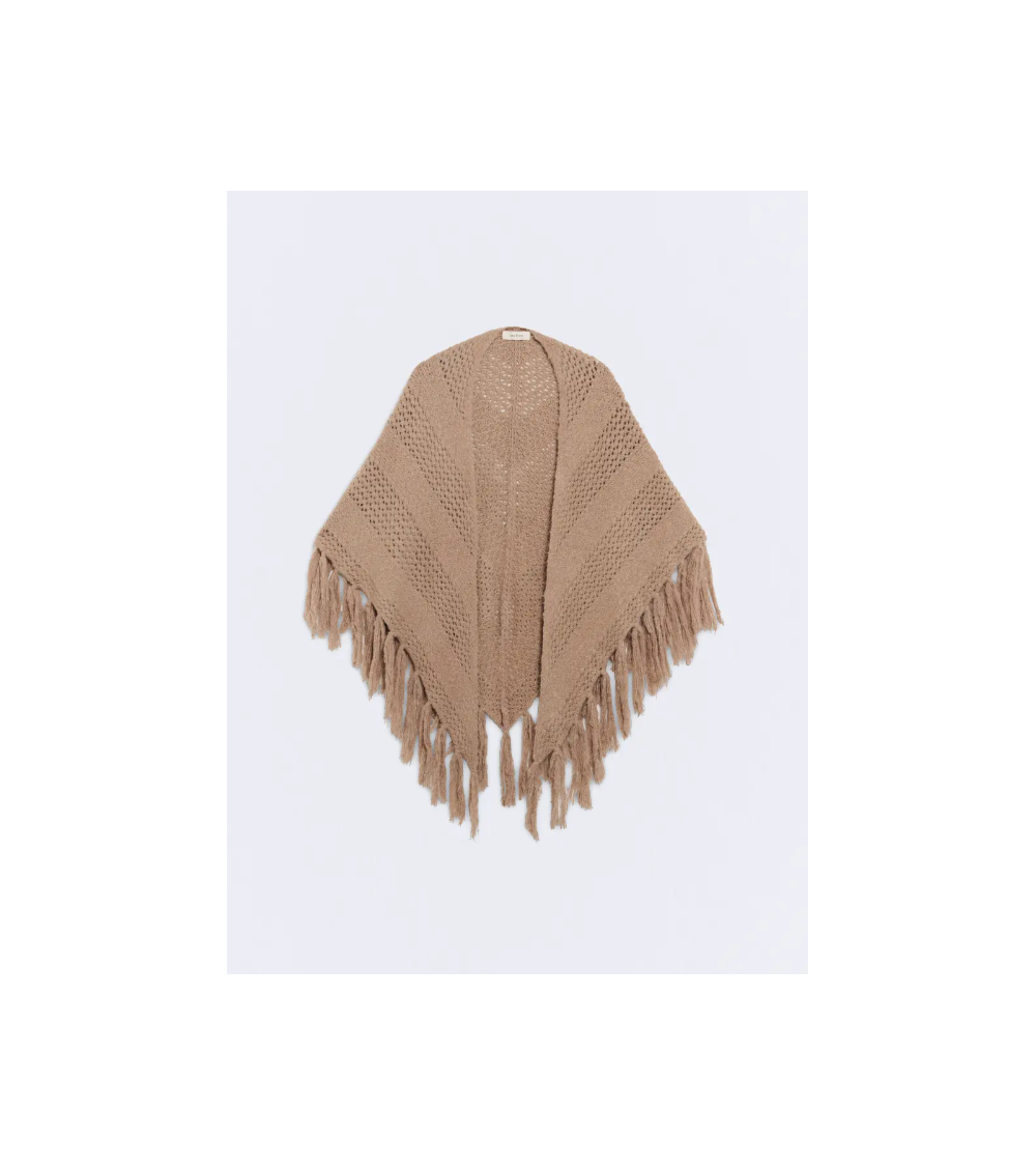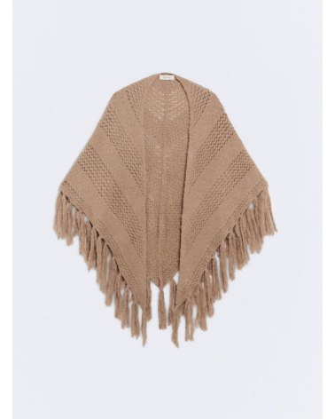 Toquilla en color topo de punto con dibujo diagonal con flecos de ESEOESE