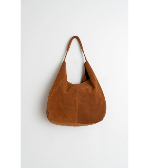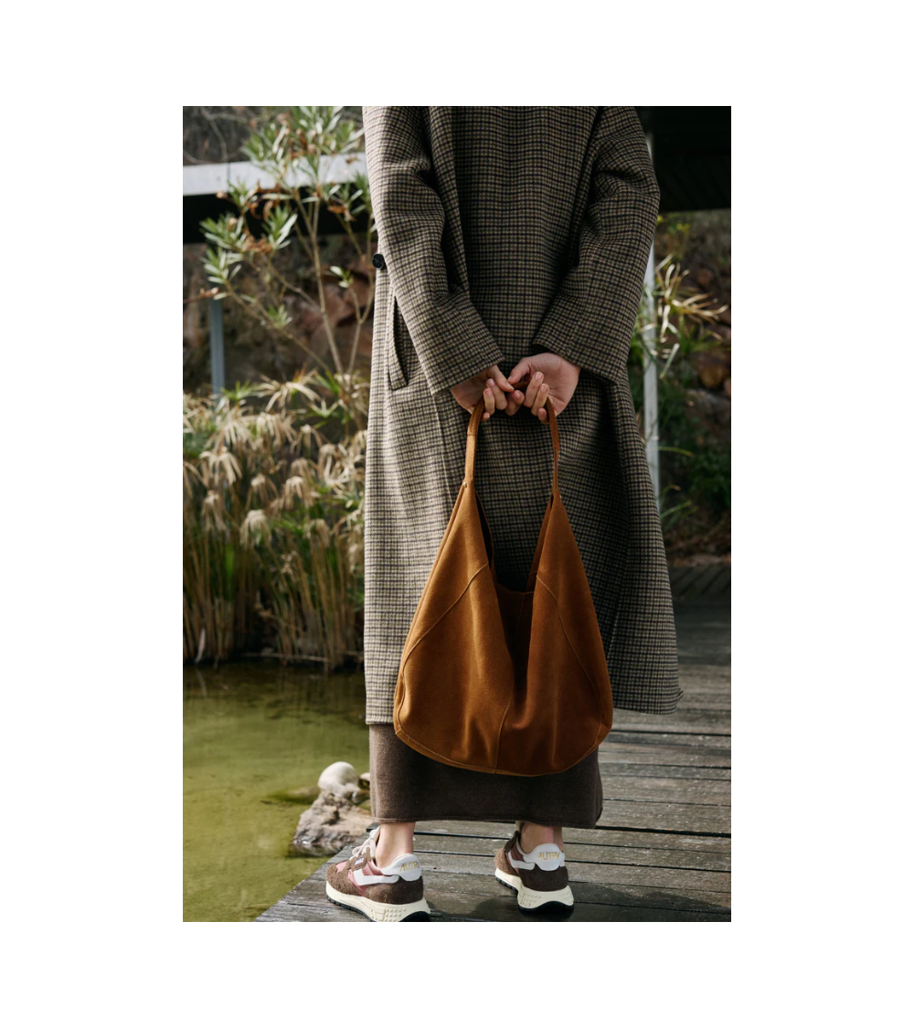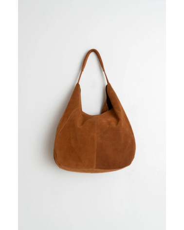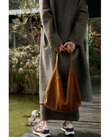 Bolso tote con asa de mano/hombro en piel de serraje sin forrar con bolsillo de parche y cierre de cremallera que hace que sea más blando y fácil de usar color tabacco Indiandcold.