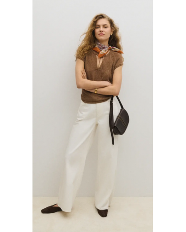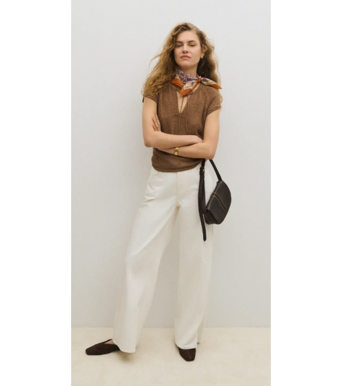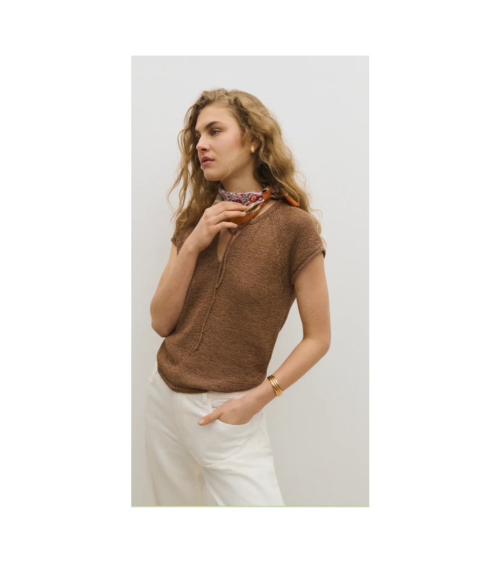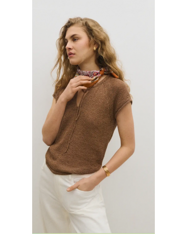 Top punto en color tostado con escote V con lazo para atar de ESEOESE