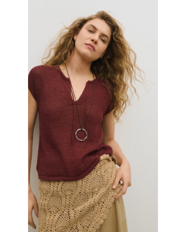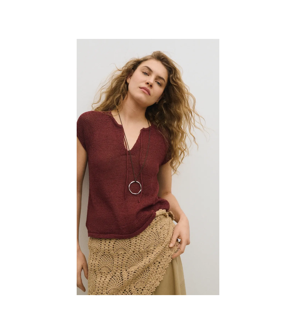Top punto burdeos escote V para atar ESEOESE