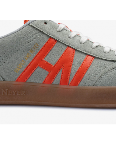 Zapatilla de estilo casual confeccionada en serraje de alta calidad. Incorpora cierre con cordones a tono, suela de goma en contraste y lateral decorado con el icónico logo H. Los refuerzos en talón y puntera le aportan mayor durabilidad, mientras que el interior acolchado asegura una pisada cómoda durante todo el día de HARPER&NEYER