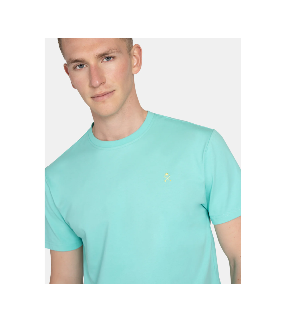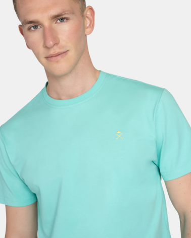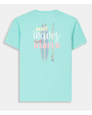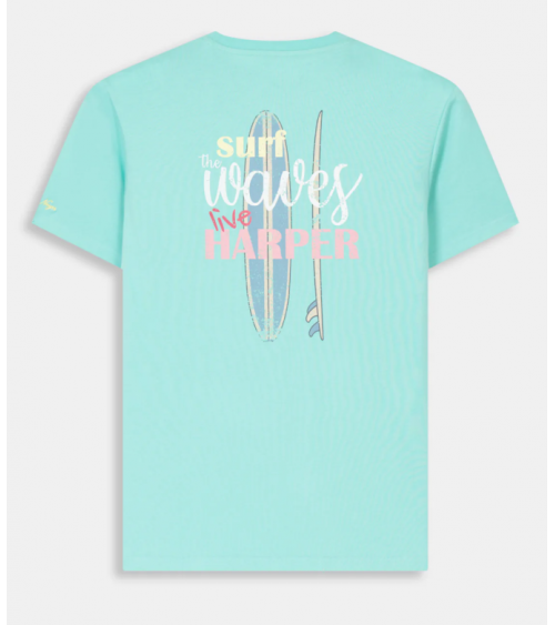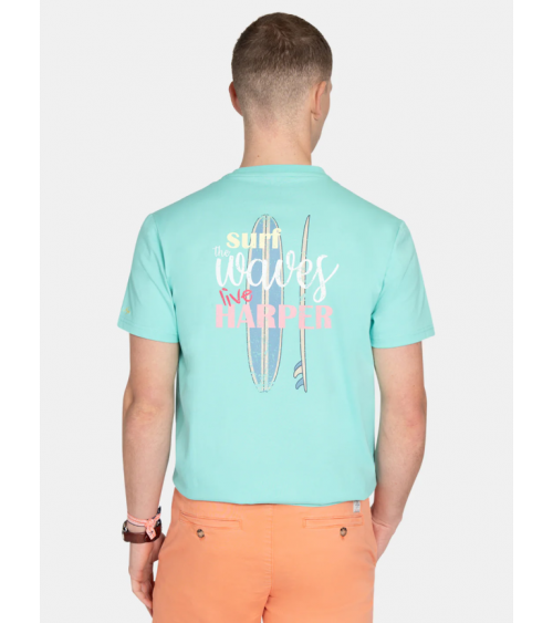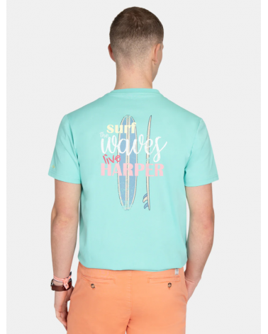 Camiseta verde agua loguito pecho a contraste print trasero tablas HARPER&NEYER