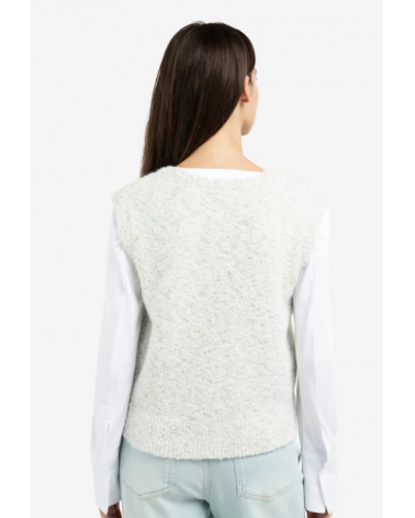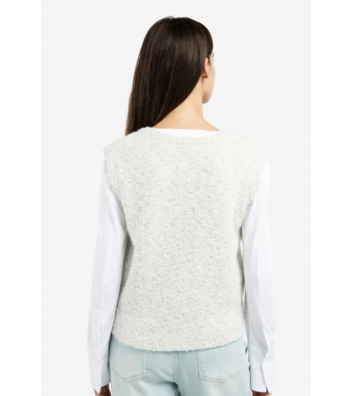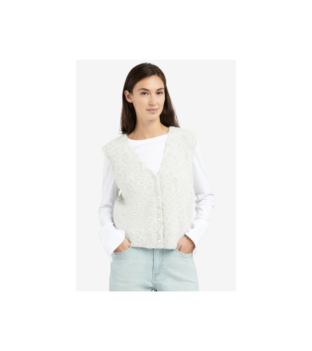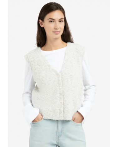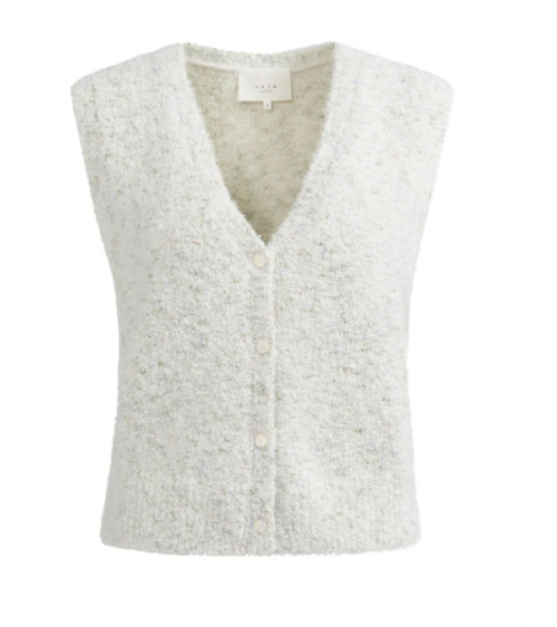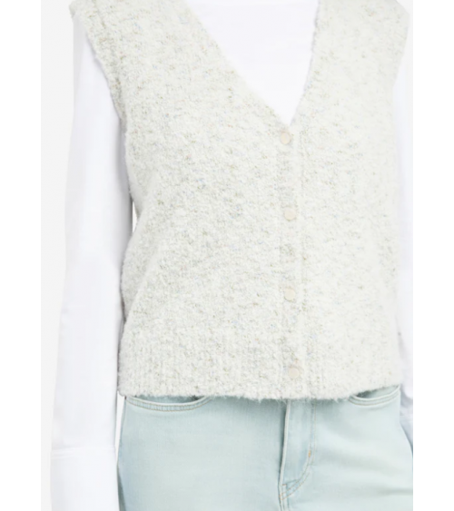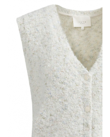 Este cárdigan sin mangas está confeccionado en un suave tejido bouclé con refinados detalles de color. Presenta escote en V, corte regular y cierre de botones en la parte delantera. Su rica textura y su aspecto jaspeado aportan un toque moderno a cualquier conjunto. YAYA WOMAN