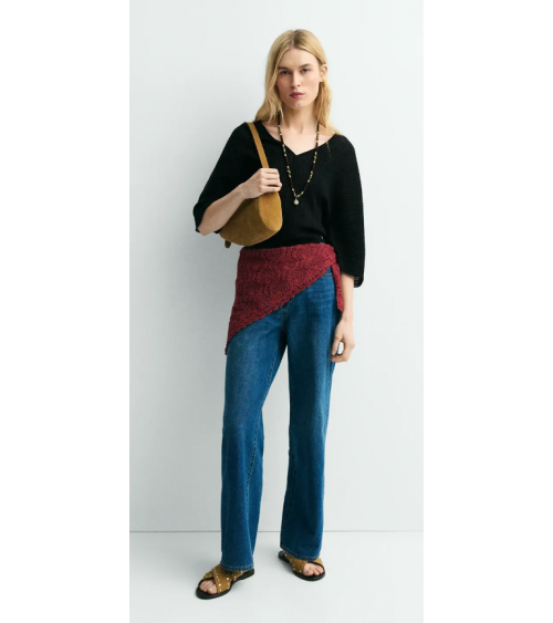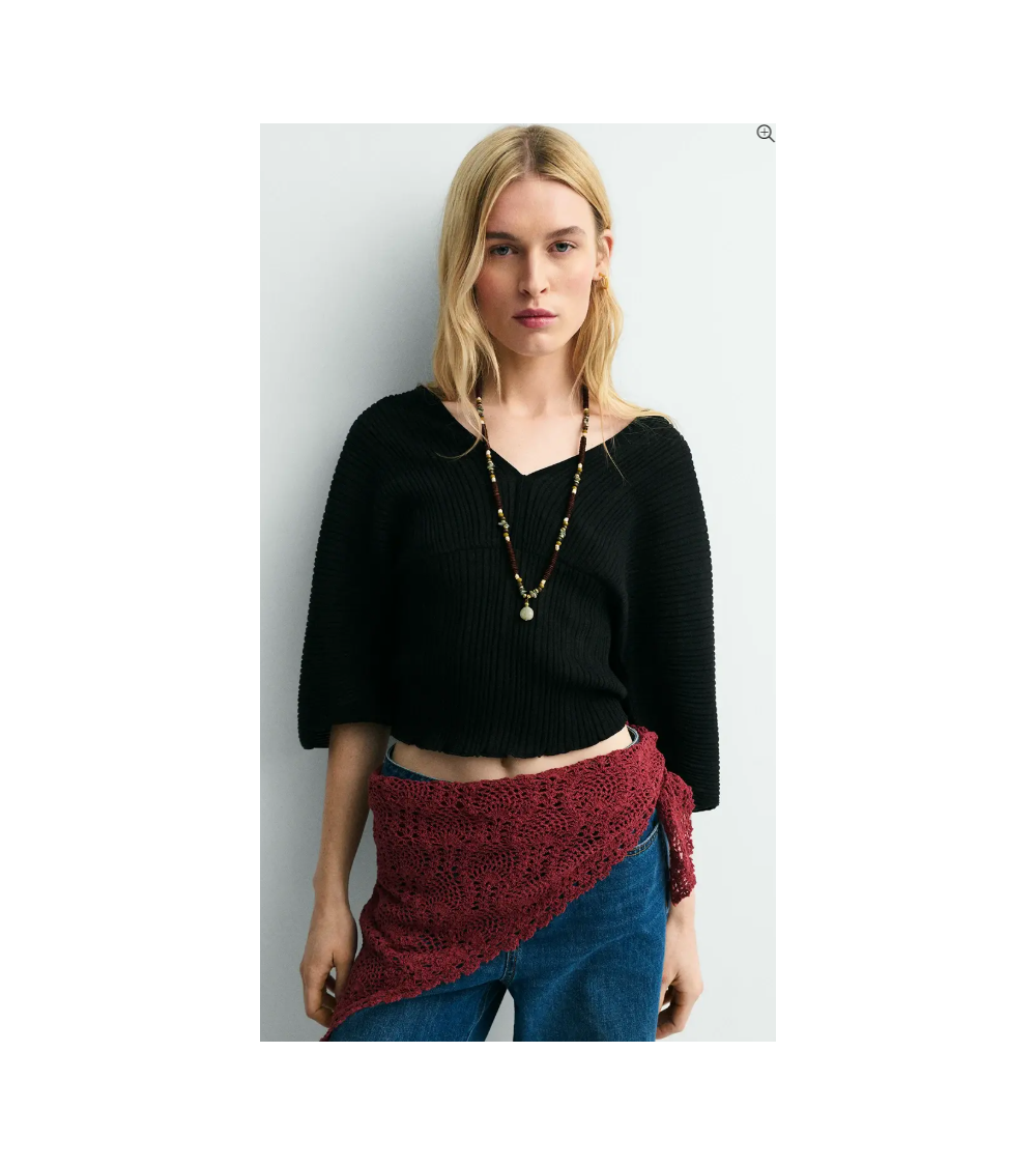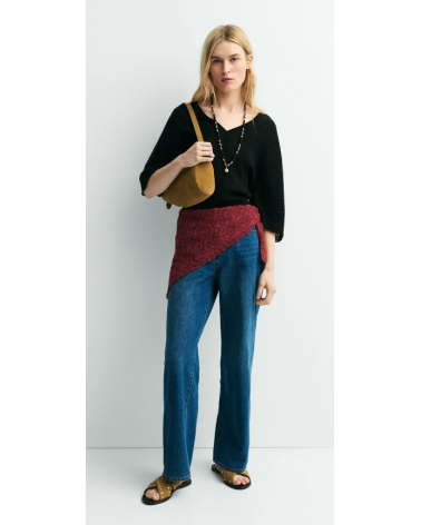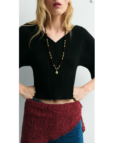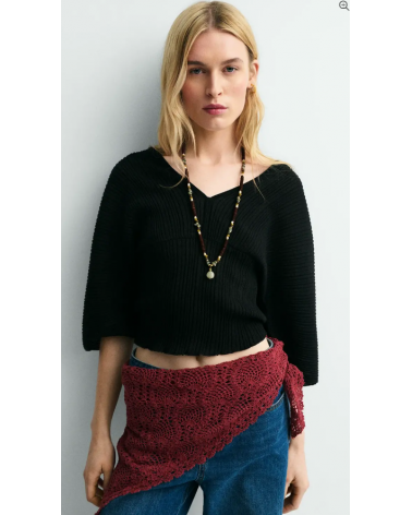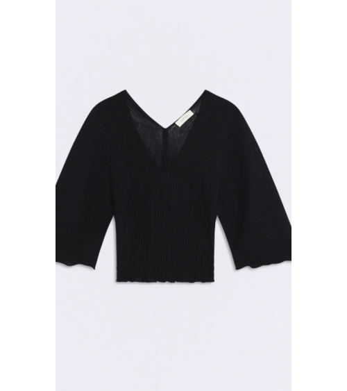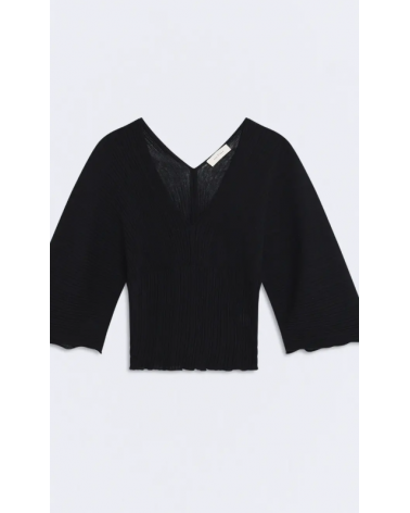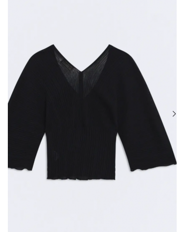Jersey negro punto plisado escote V espalda y pecho ESEOESE