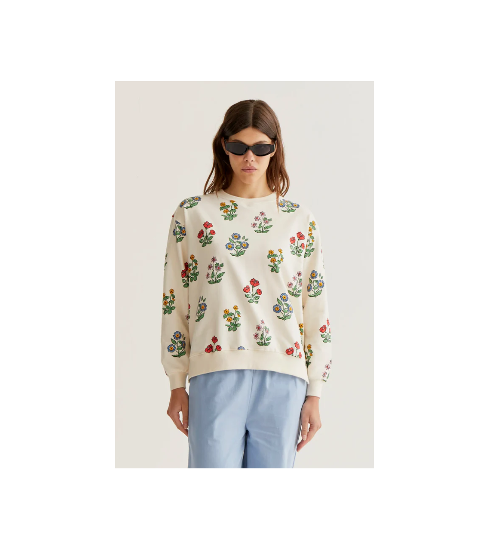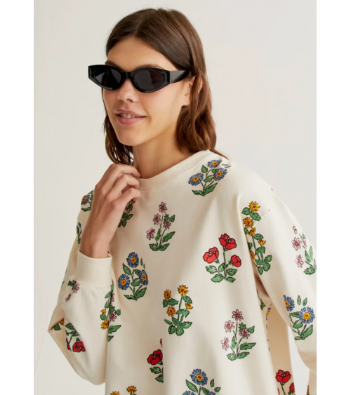 Sudadera crudo estampado flores cuello redondo COMPAÑÍA FANTÁSTICA