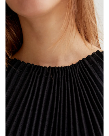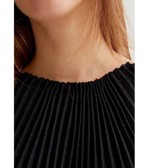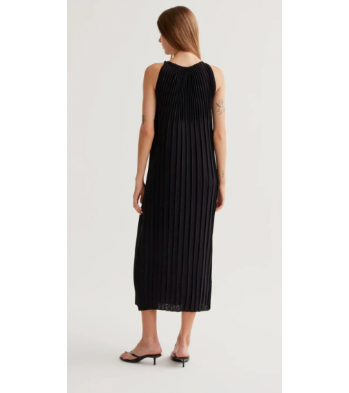 - Vestido largo con tejido de punto plisado de color negro.
