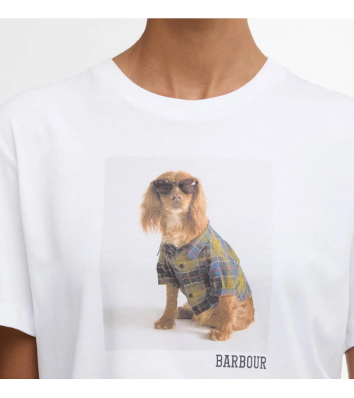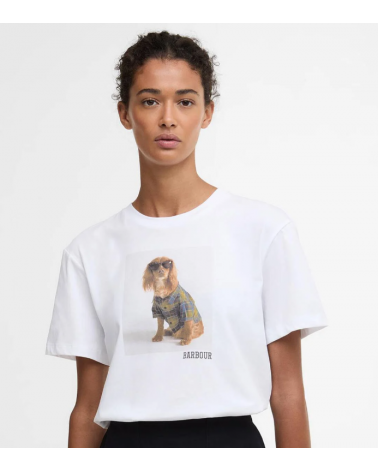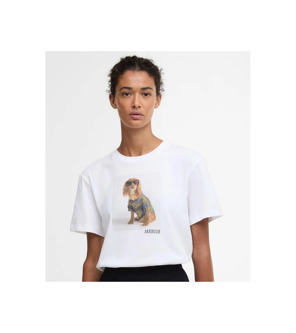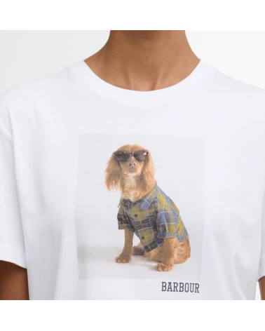 Camiseta blanca print perro en el pecho corte holgado BARBOUR