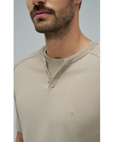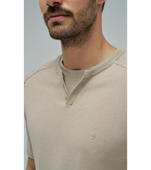 Jersey beige finito cuello v con dos botones decorativos SALSA JEANS