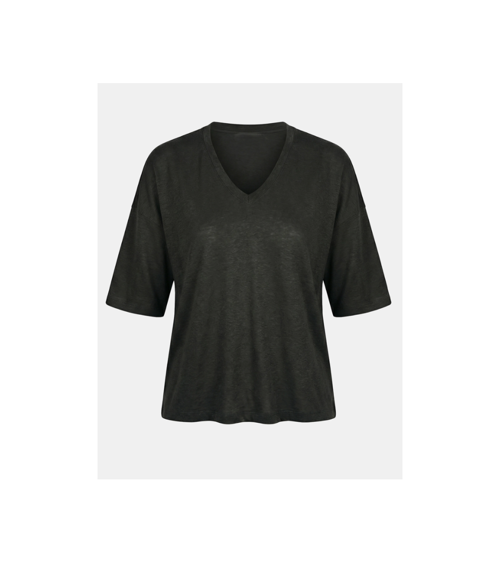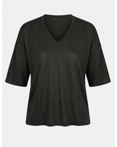 Camiseta carbón amplia de lino escote V manga corta HUMILITY