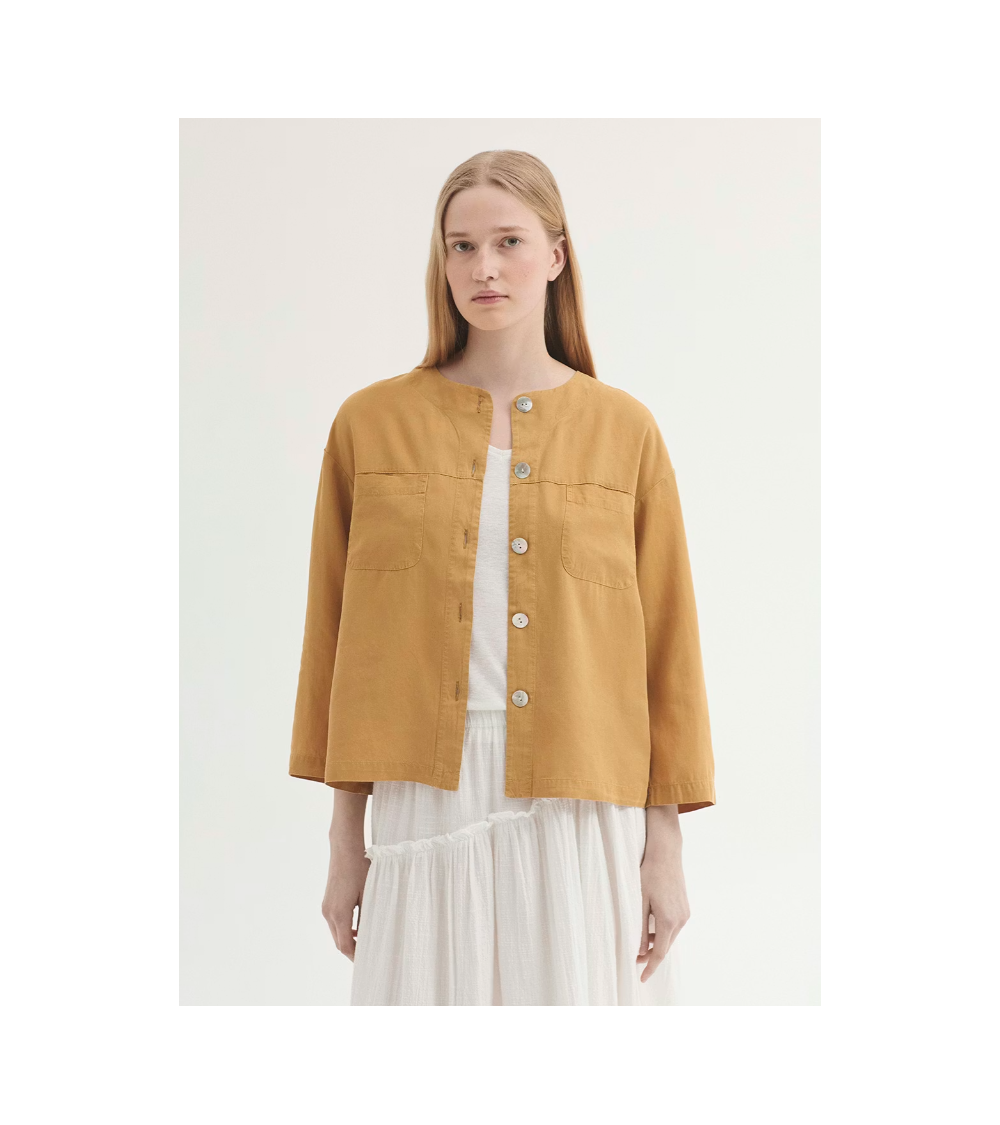 Chaqueta verde fabricada en tencel con bolsillos de parche en los pechos de NICE THINGS