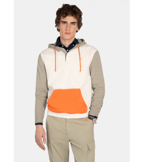 Sudadera crema canguro bloques colores capucha contraste HARPER&NEYER