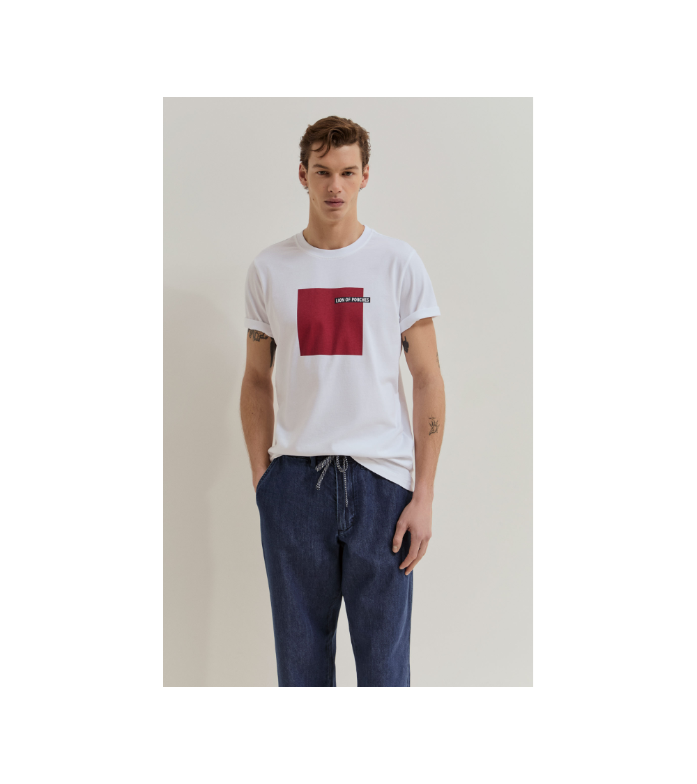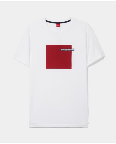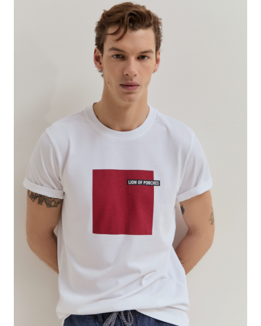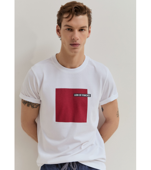 Camiseta blanca manga corta estampado rojo en pecho LION OF PORCHES