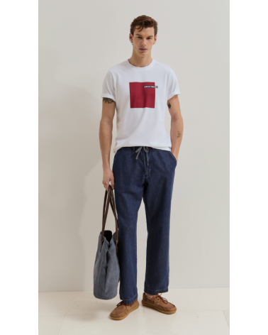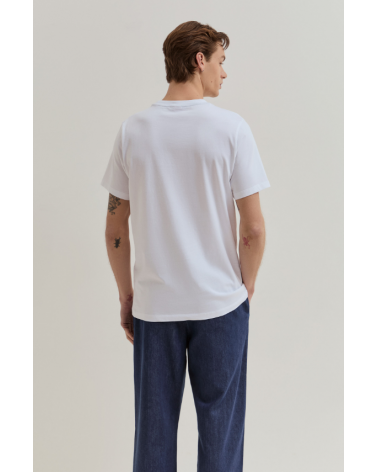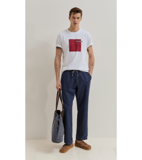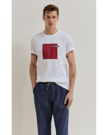 Camiseta de manga corta confeccionada en 100% algodón. Presenta un estampado geométrico en el pecho con el nombre de la marca integrado, que aporta un detalle gráfico y contemporáneo al diseño. Una prenda versátil y fácil de combinar, ideal para looks casual con un toque actual.