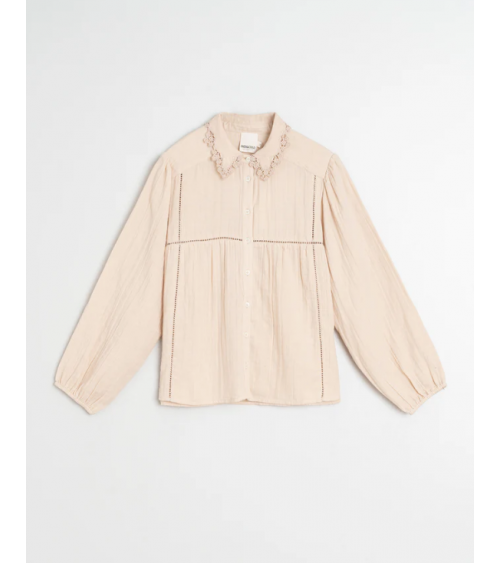 Camisa rosa palo cuello crochet vainicas doble gasa INDI&COLD