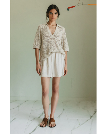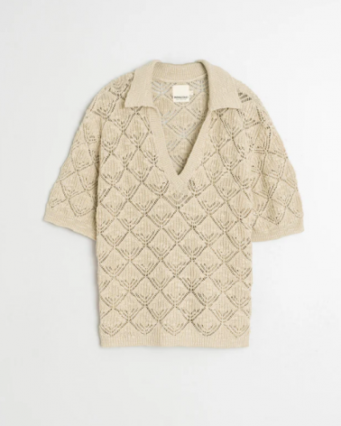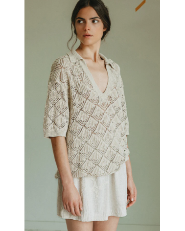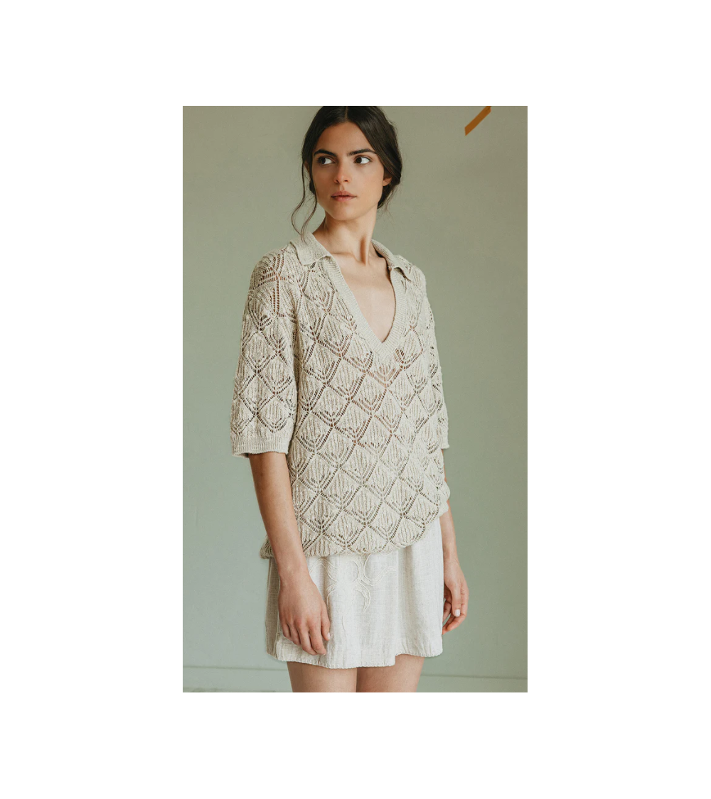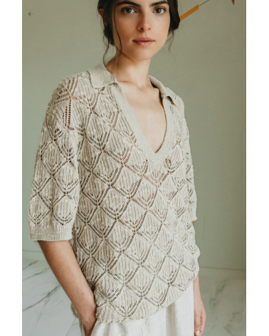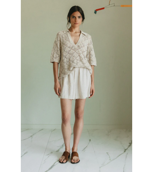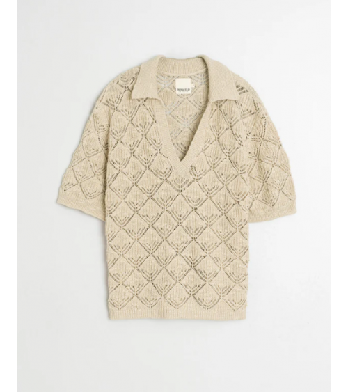 Polo beige punto fantasía remates canalé cuello V INDI&COLD