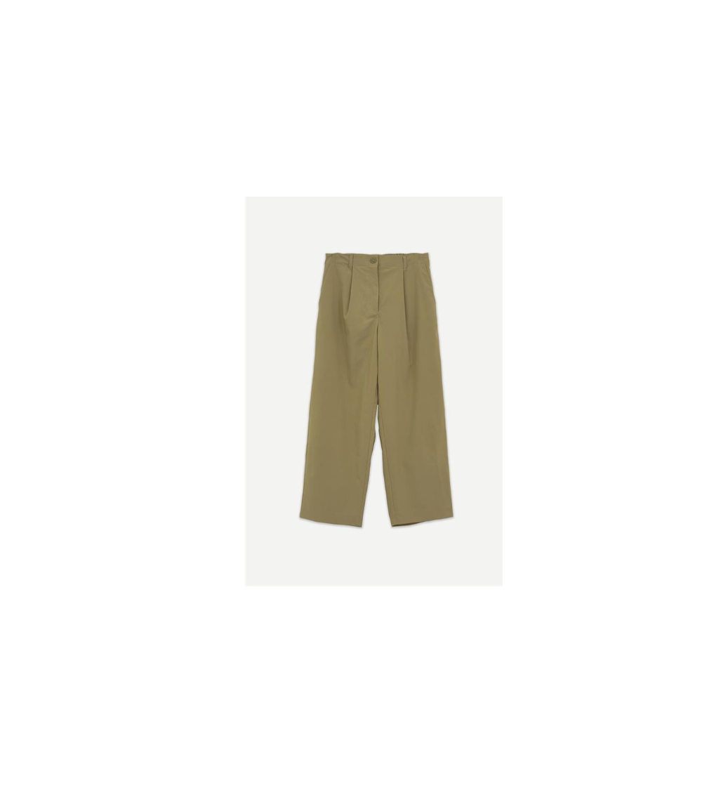 Pantalón en color kaki liso con elástico trasero y pierna recta, de estilo chino. Detalle importante característico de la marca, el tejido técnico súper confortable e impermeable.
