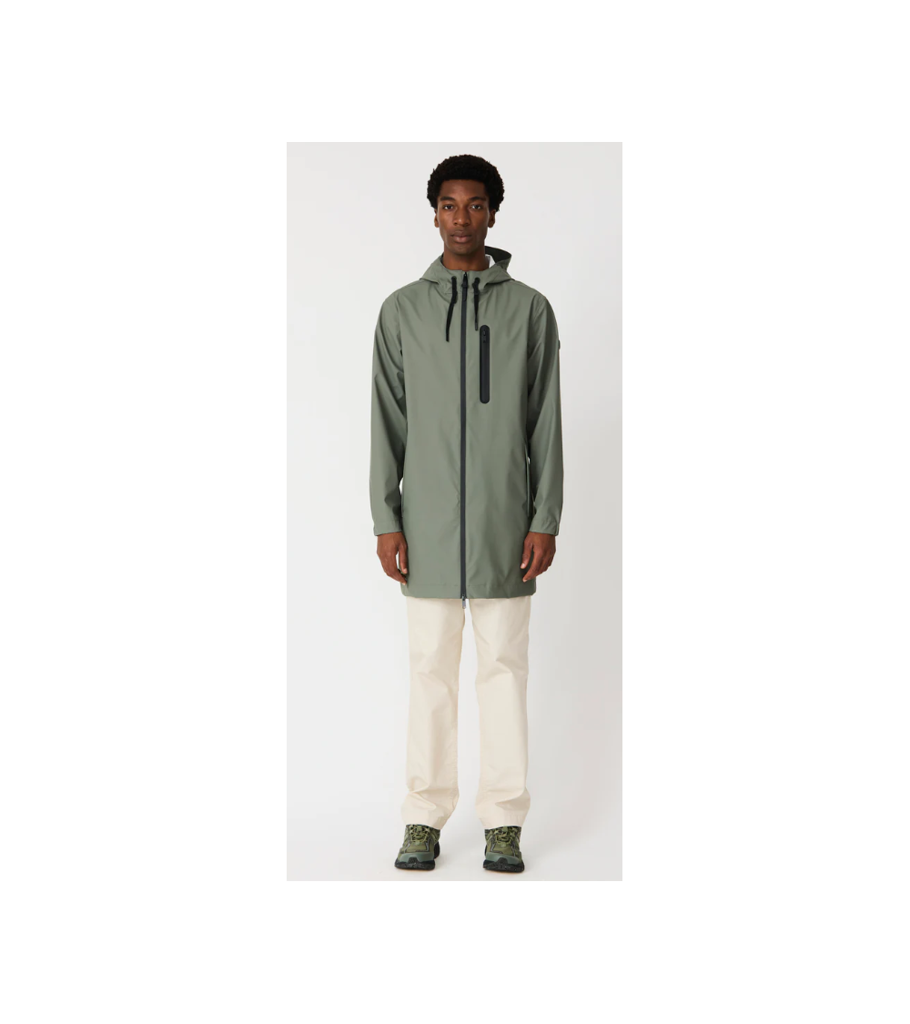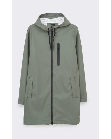 Chaqueta kaki impermeable larga costuras selladas bolsillo pecho TANTA