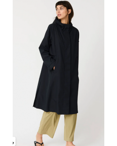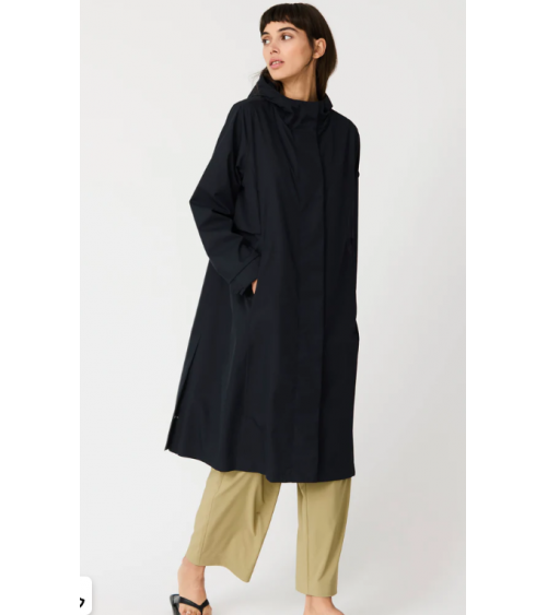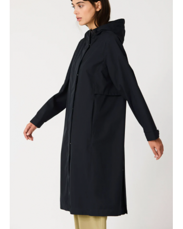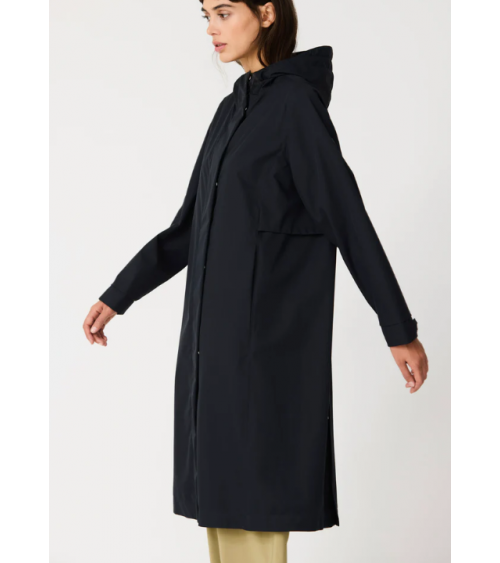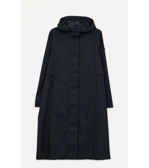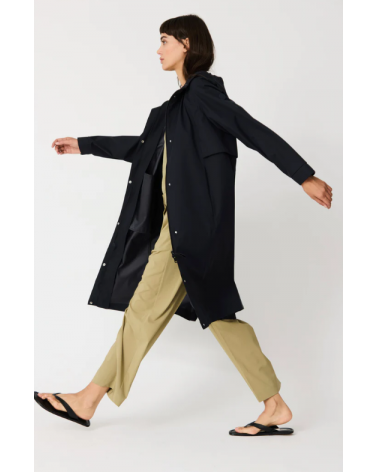 Abrigo elegante y atemporal confeccionado en un twill ultraligero y transpirable. Su apariencia limpia y sin costuras visibles, junto con sutiles cortes laterales, crea una silueta refinada. 100 % waterproof, con todas las costuras selladas.