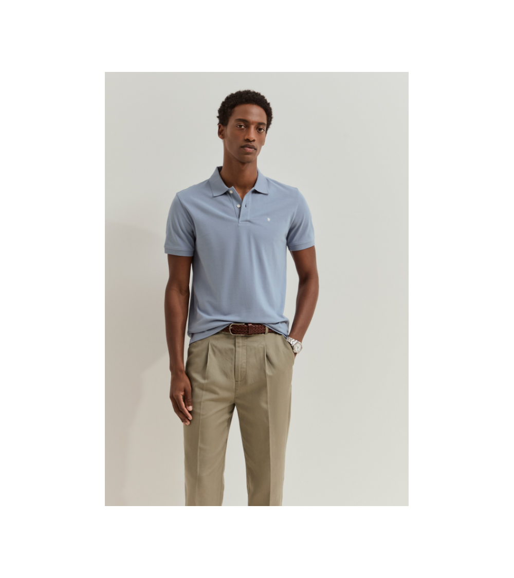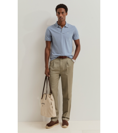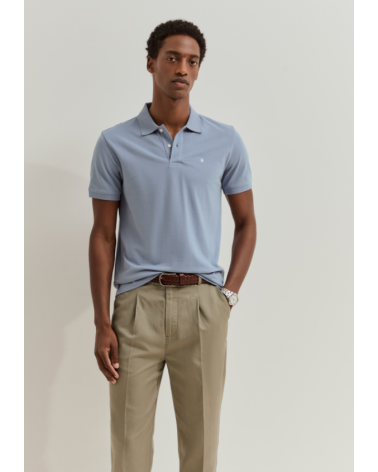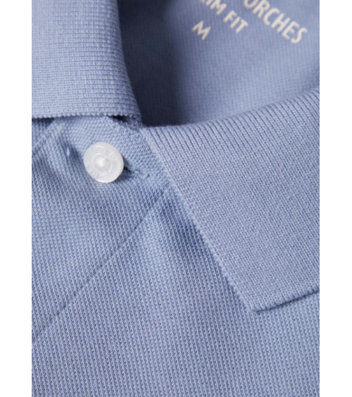 Polo azul claro manga corta slim fit cuello tapeta dos botones LION OF PORCHES