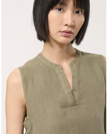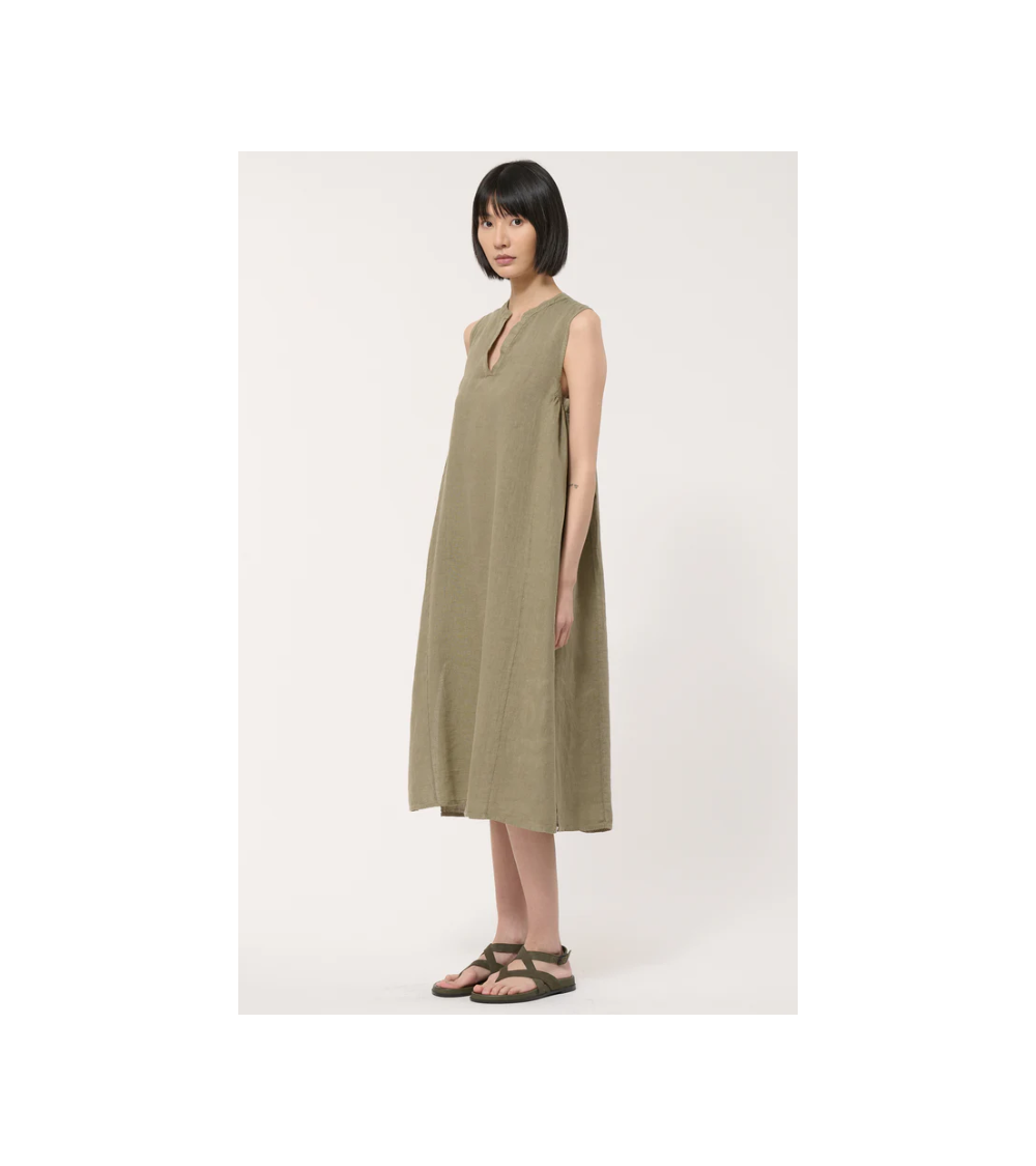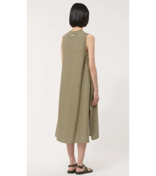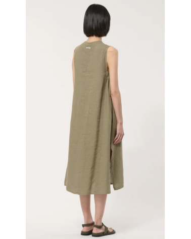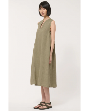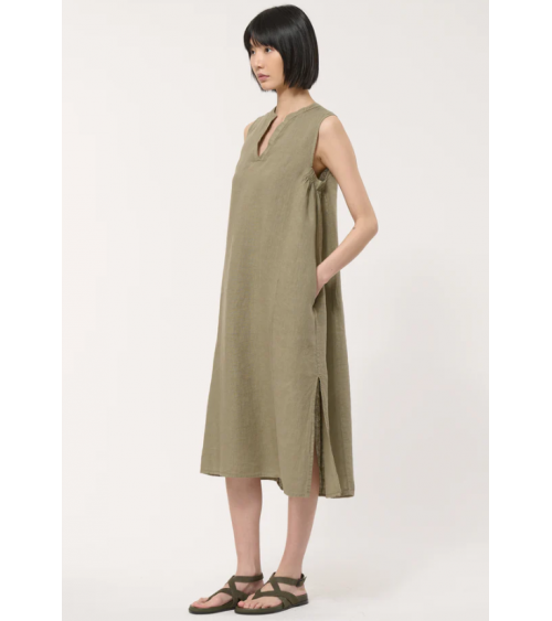 Vestido midi en color militar sin mangas escote V HUMILITY