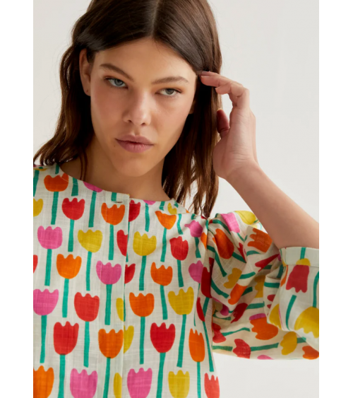 Blusa tulipanes multicolor algodón manga 3/4 abullonada COMPAÑÍA FANTÁSTICA
