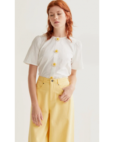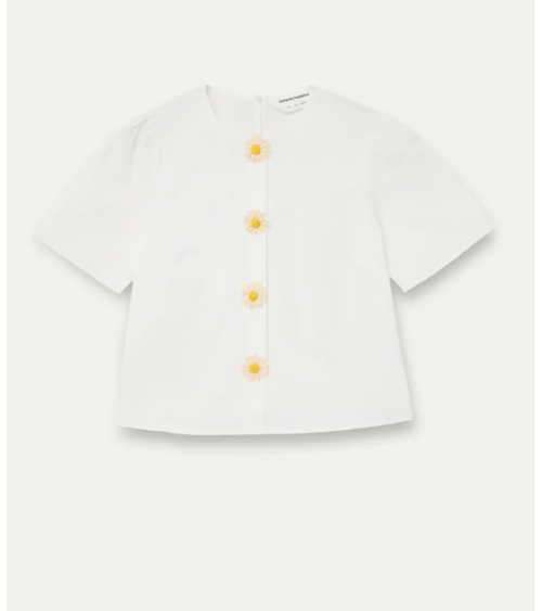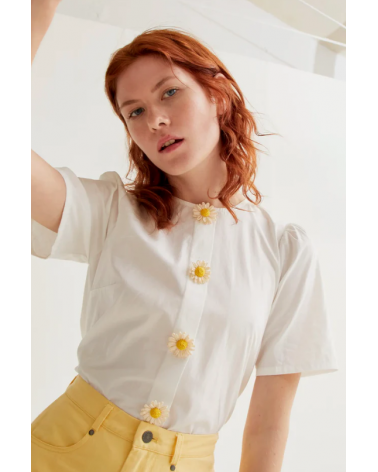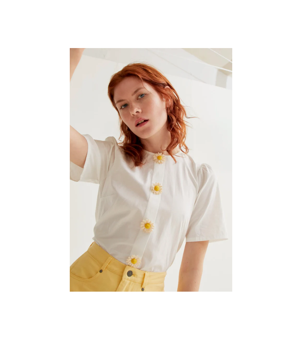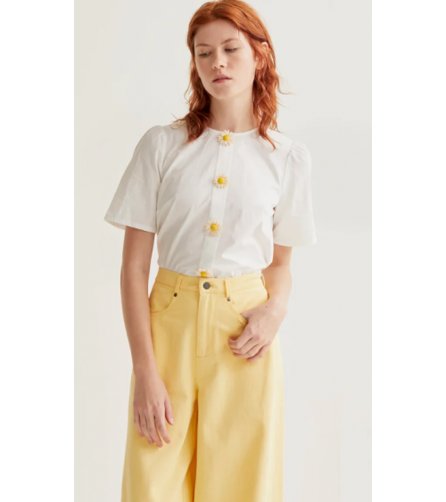 Top blanco manga corta cuello redondo botones detalle floral COMPAÑÍA FANTÁSTICA