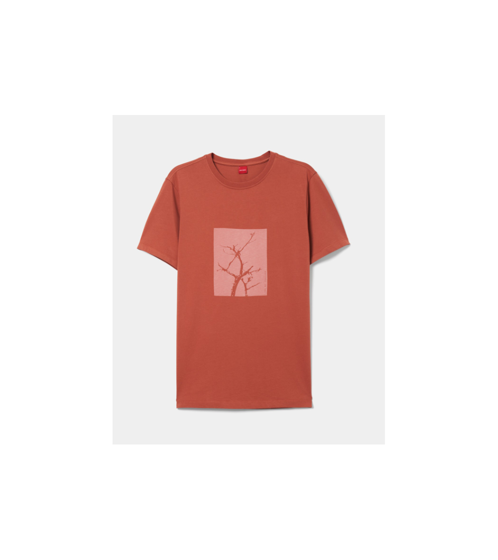 Camiseta de manga corta y cuello redondo, confeccionada en 100% algodón. Presenta un estampado frontal. Disponible en varios colores.