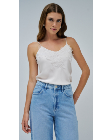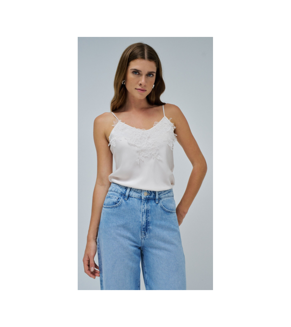 - Top de satén con encaje
