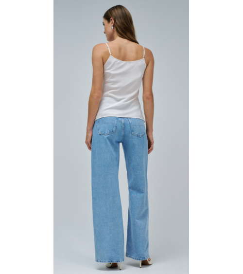Este top negro combina el brillo de su tejido satinado con la delicadeza del encaje. El corte entallado abraza tus curvas con elegancia. El escote en V alarga sutilmente la silueta. Tirantes ajustables para un ajuste perfecto y cómodo.