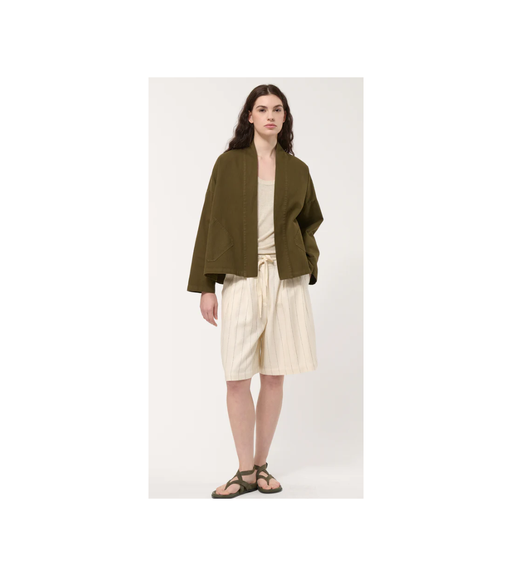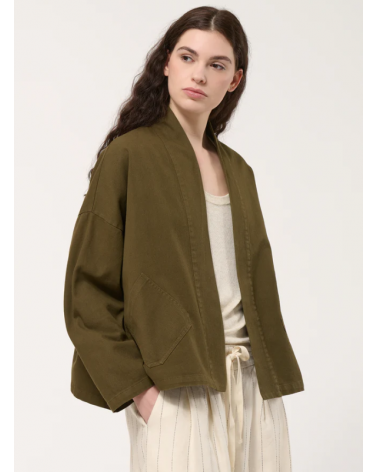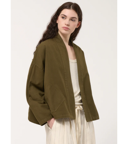 Chaqueta tipo kimono corta kaki bolsillos parche abierta HUMILITY