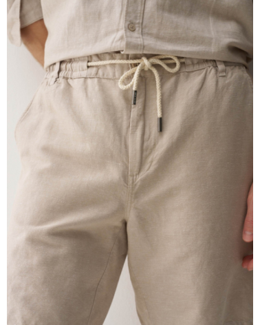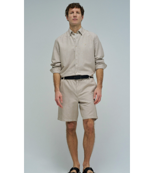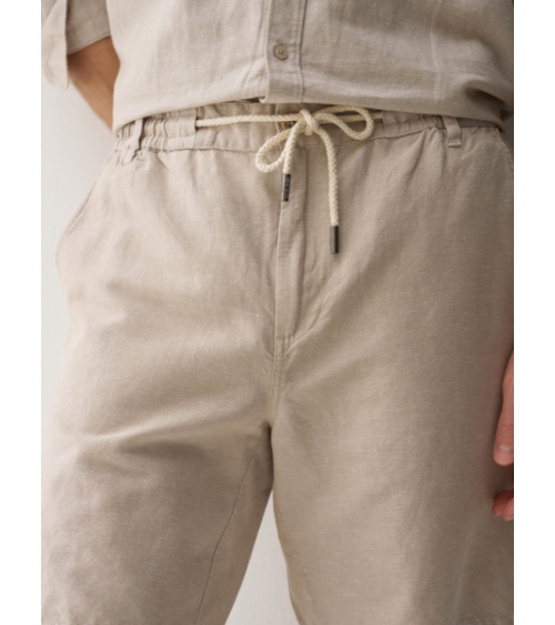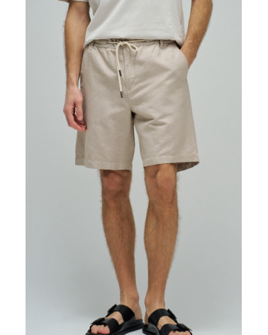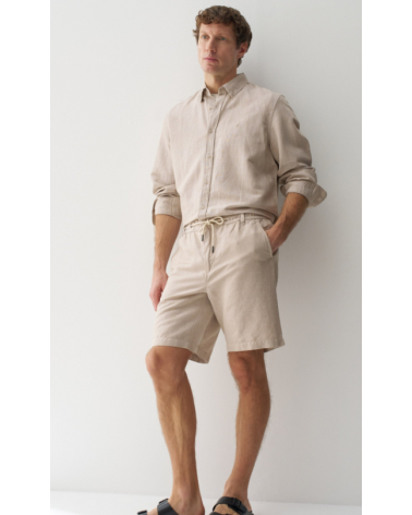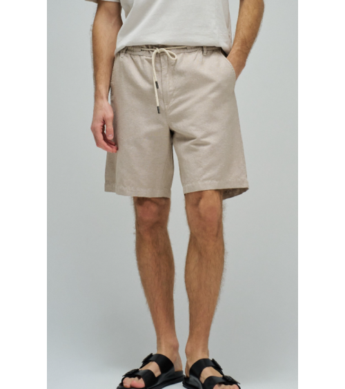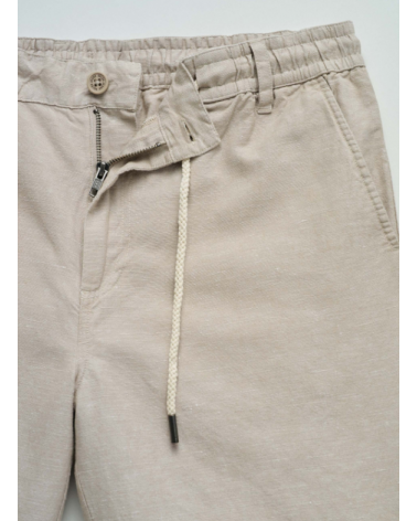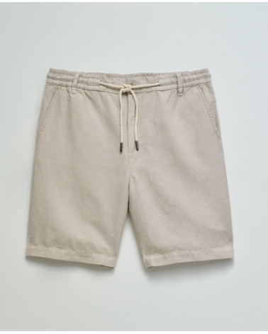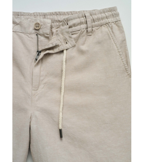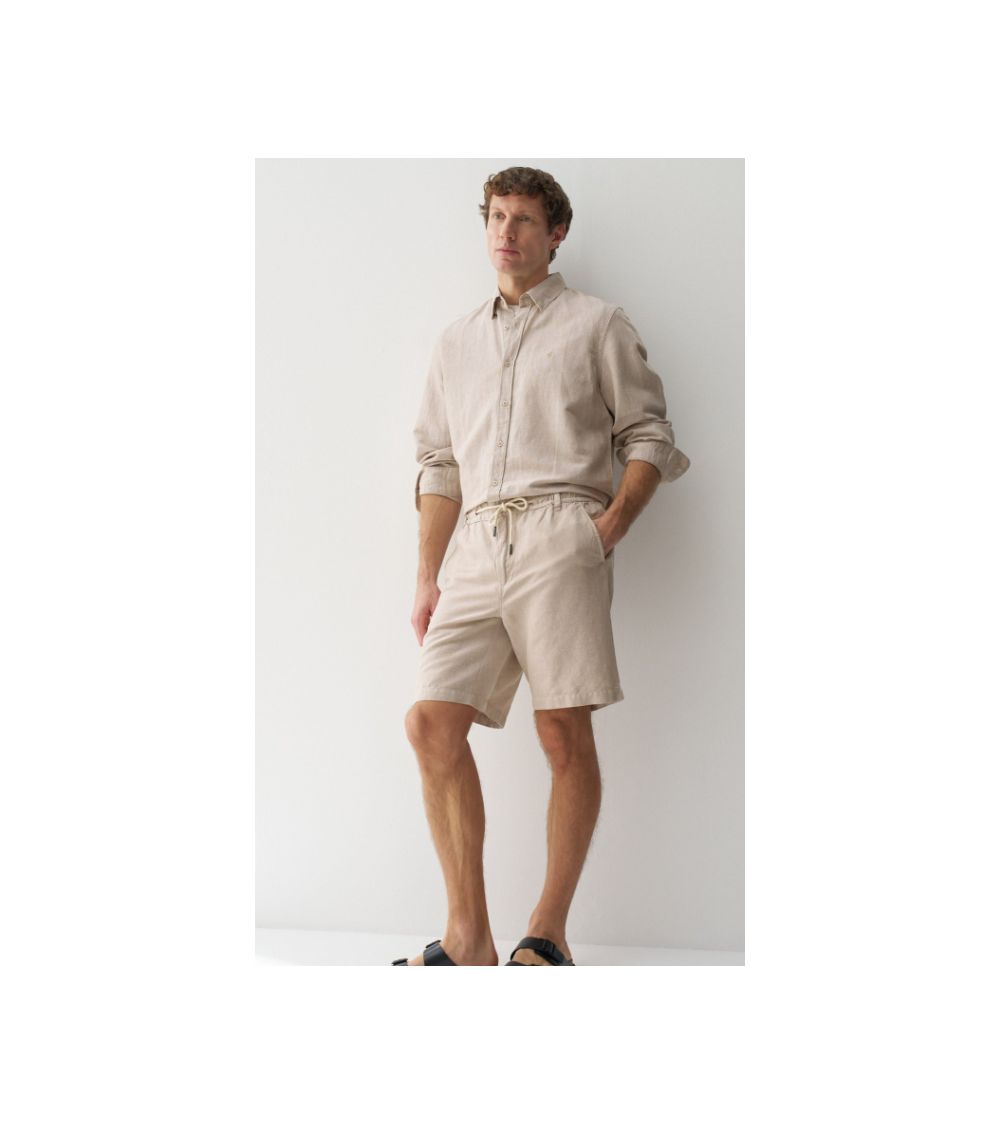Bermudas hechas en una mezcla de lino ligero y transpirable. Con un fit regular y cintura media. La apertura con cremallera y botón confiere practicidad, mientras que el cordón ajustable permite un ajuste personalizado.