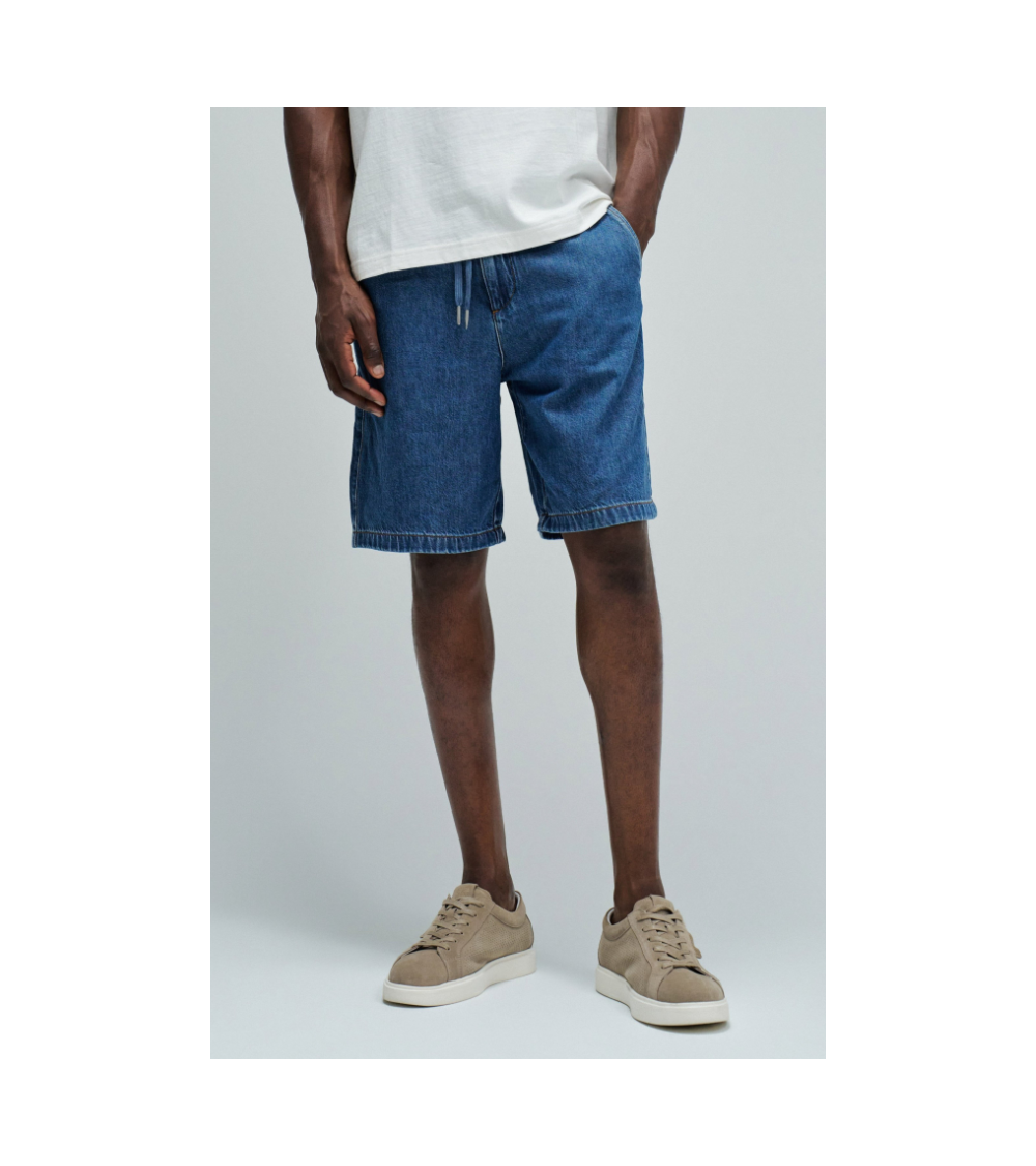 Desenfadados, ligeros y pensados para el día a día. Estos pantalones cortos de denim ligero son la elección ideal para un look cómodo sin renunciar al estilo. El corte regular garantiza libertad de movimientos, mientras que la cintura media con elástico y cordón ajustable proporciona un ajuste práctico y adaptable. Los pasadores añaden versatilidad, permitiendo usarlos con cinturón para un aspecto más estructurado.
