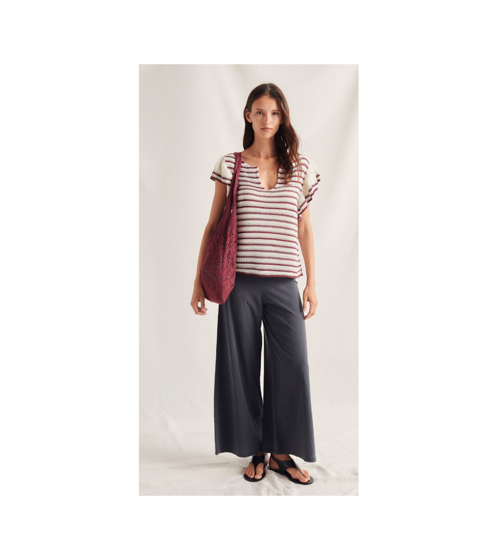Pantalón 100% algodón. Cinturilla engomada y camal ancho.