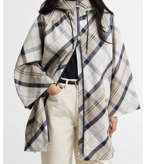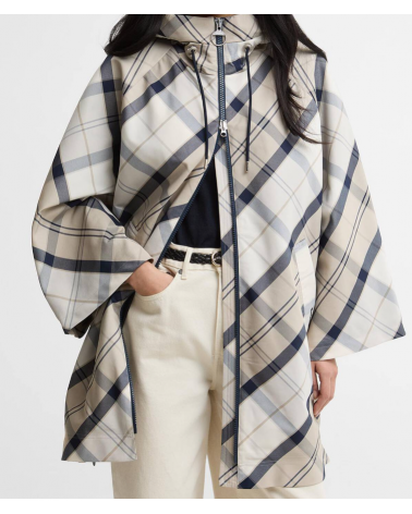 Capa impermeable tartán navy/crudo capucha mangas anchas BARBOUR