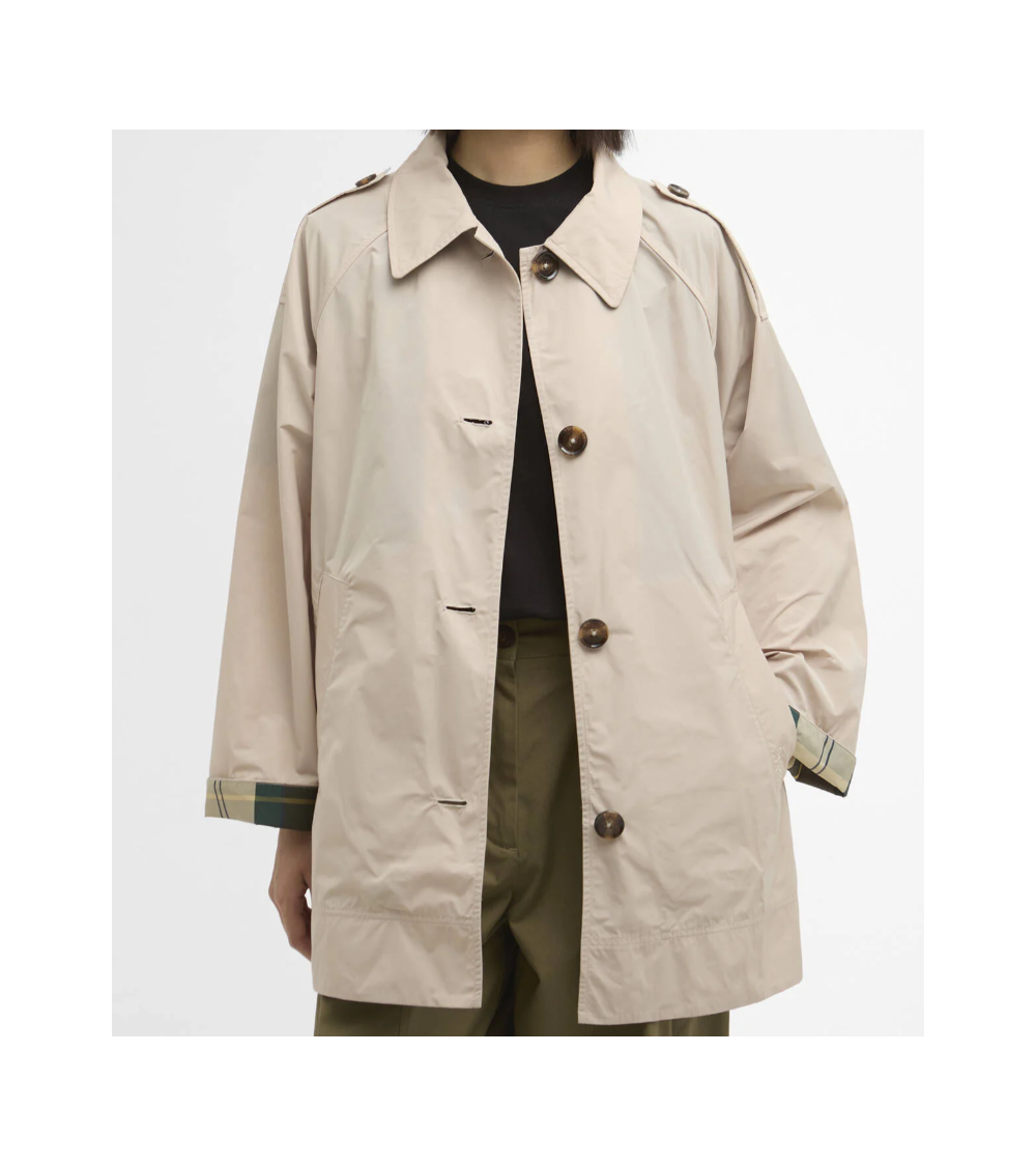 El impermeable Barbour Maggie es un abrigo ligero de largo medio diseñado para mantenerte elegante y seco. Cuenta con un profundo pliegue invertido en la espalda para una silueta sofisticada. Sin forro para una mayor ligereza, incluye un cuello, bajo cuello y puños de tartán para un toque distintivo de Barbour. Con su corte relajado, este impermeable es perfecto para usar en capas en días lluviosos.