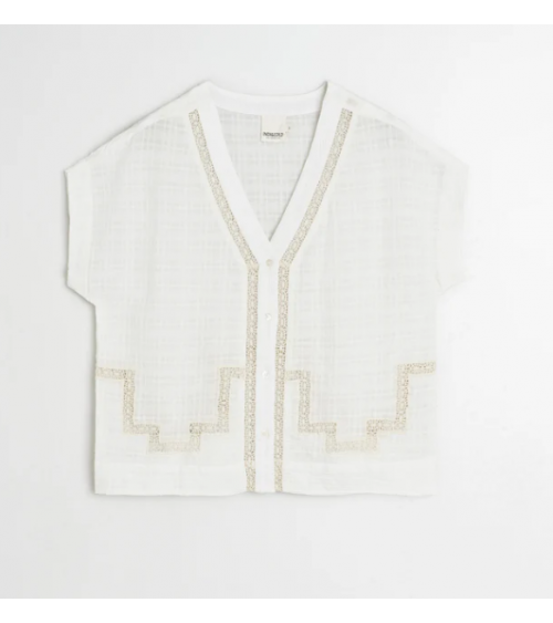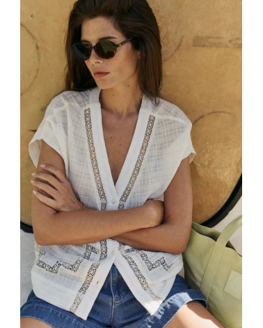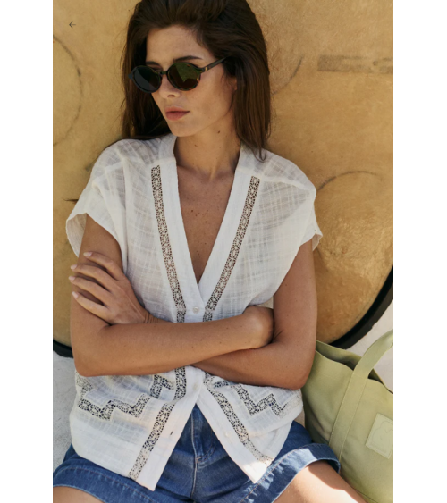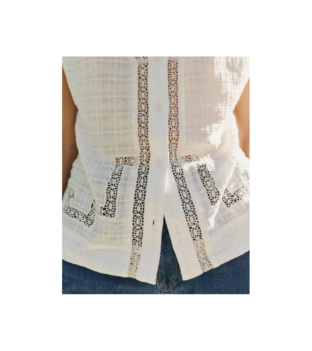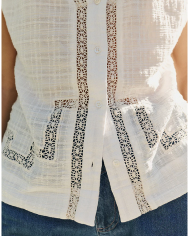 Una blusa ligera y especial gracias a sus detalles de puntilla. Perfecta para elevar un look sencillo con un toque delicado y artesanal.
