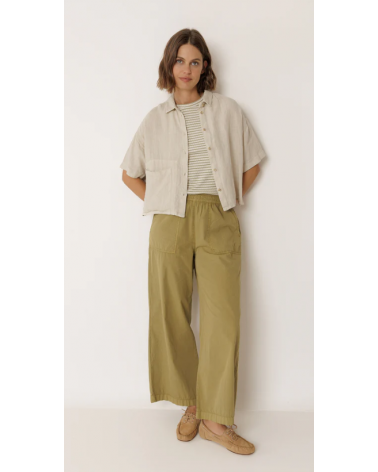 • Hombro caído y manga corta. • Cierre frontal abotonado y bolsillo de parche. • Pequeñas aberturas laterales. • Tejido 100% lino. • Box fit: Diseñado con un corte cuadrado, ancho y corto. • Medidas sobre talla S en plano: Largo desde hombro 59cm. Ancho de pecho 59cm. Ancho de bajo 59cm. Tallaje: +1 cm de largo por talla y +2cm en contornos.