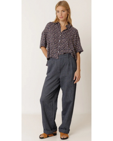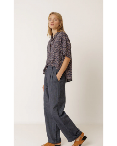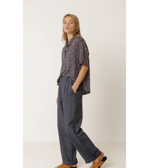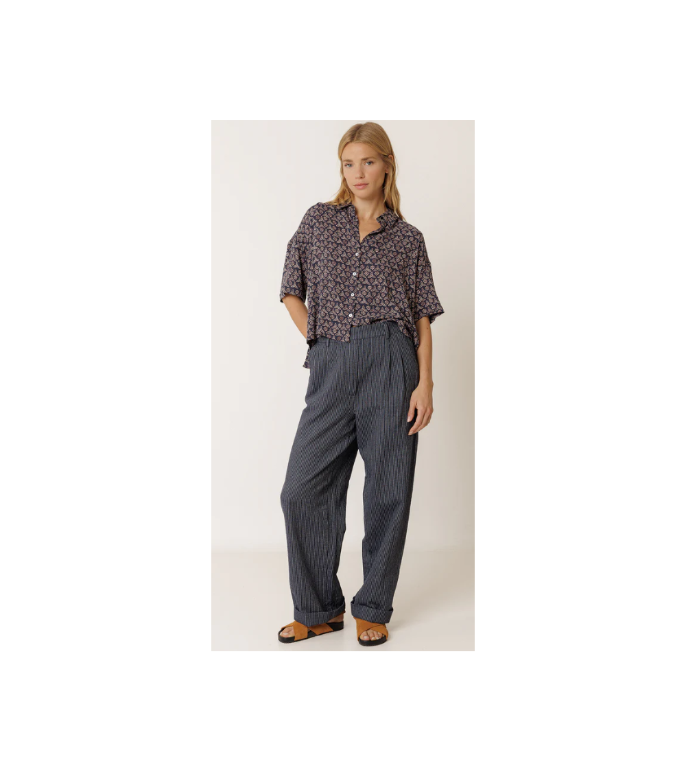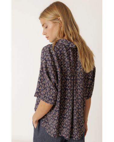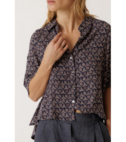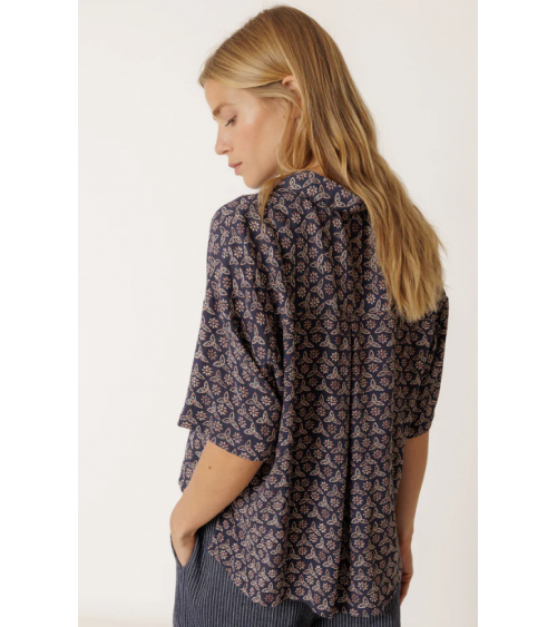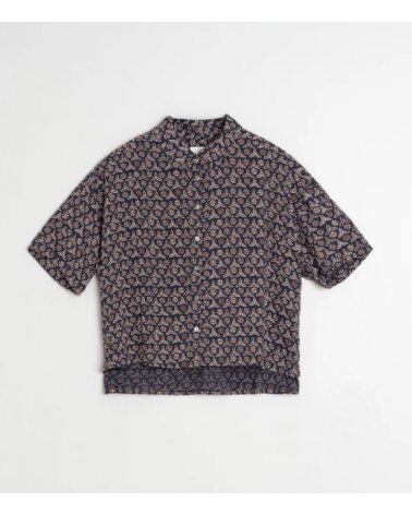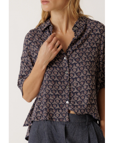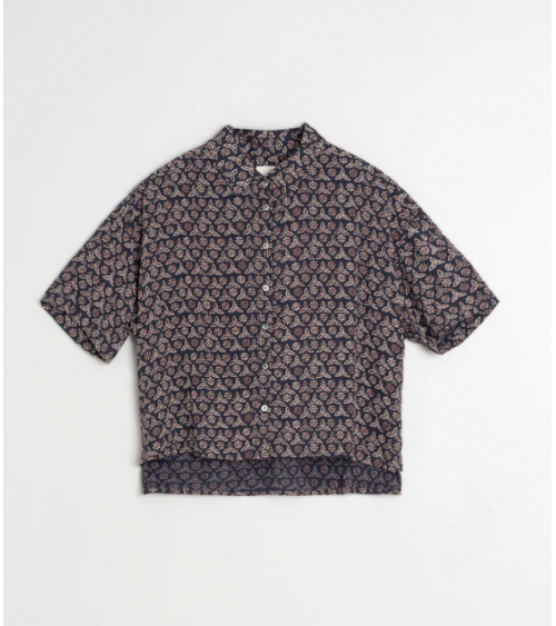 Camisa oversize en viscosa sostenible, con un estampado tipo blockprint.
