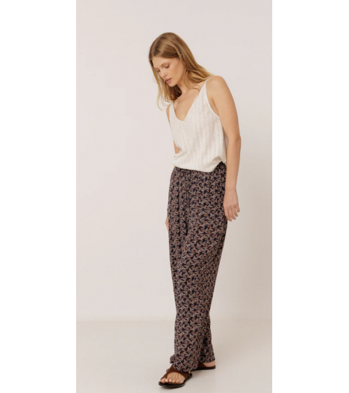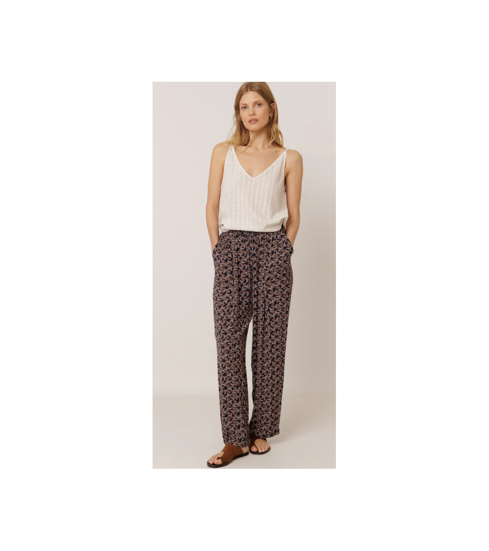 Pantalón estampado marino fluido cinturilla engomada cordón ajustable INDI&COLD