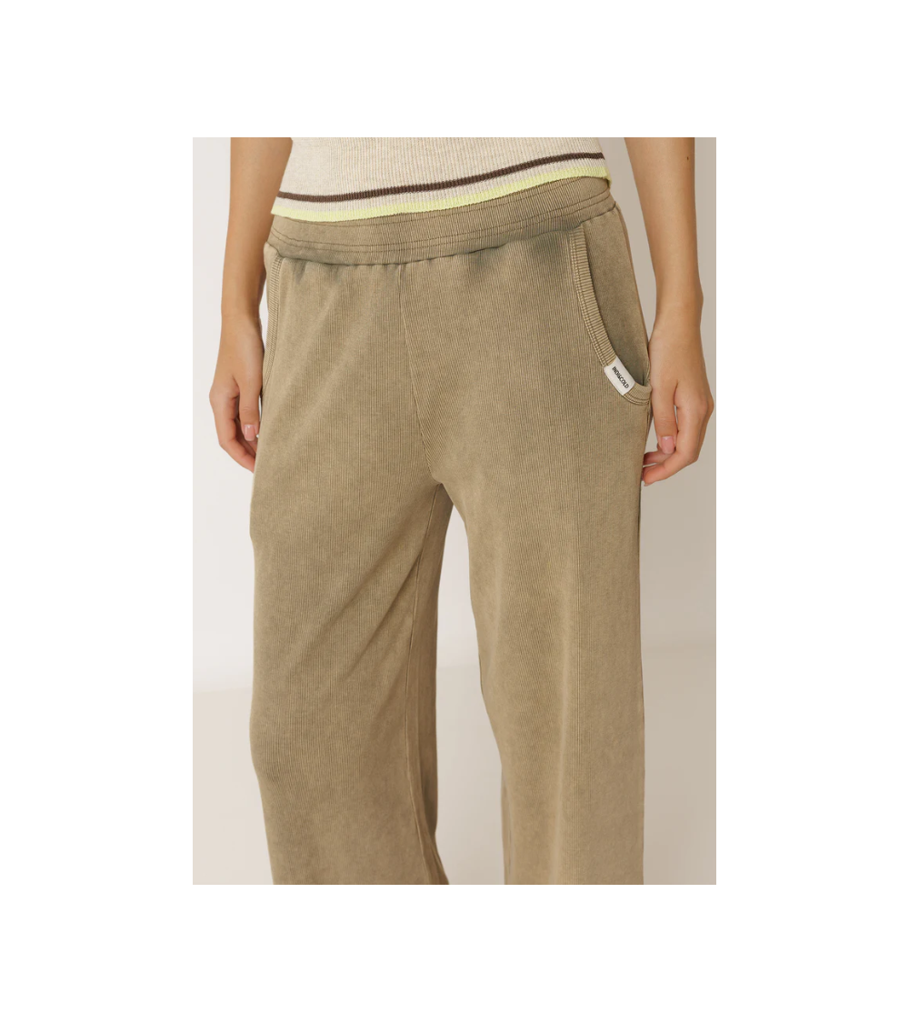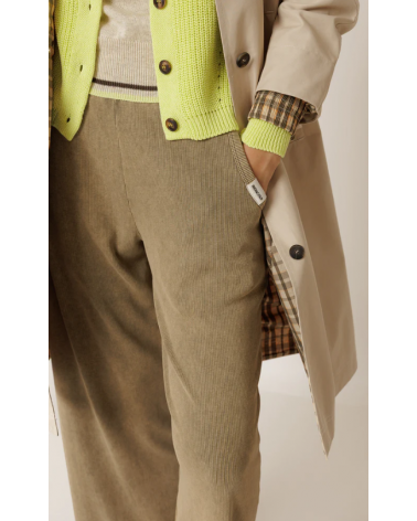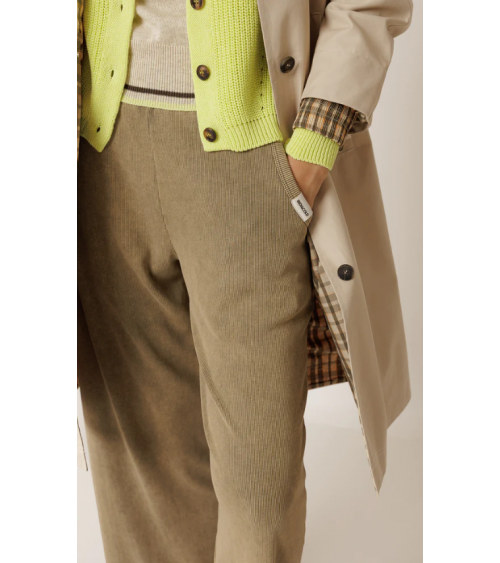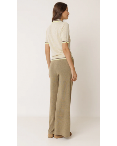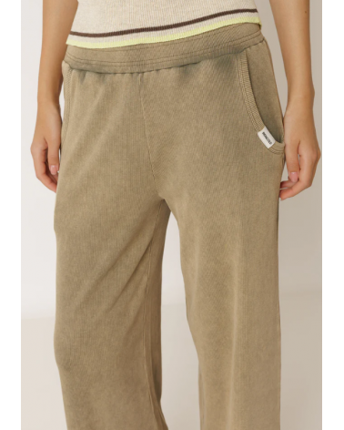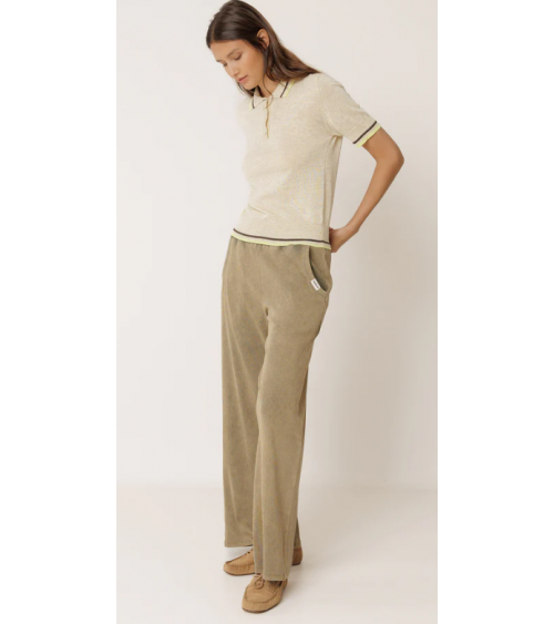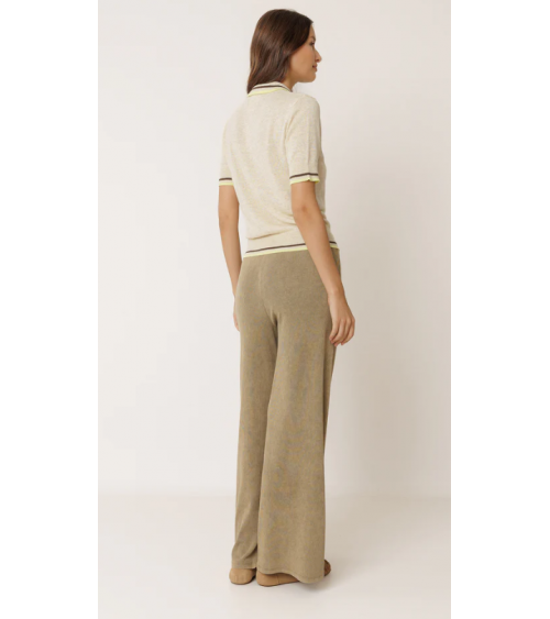 Pantalón khaki tiro alto cintura elástico interior pierna ancha INDI&COLD