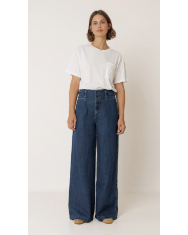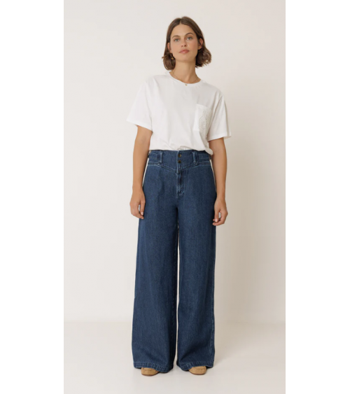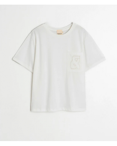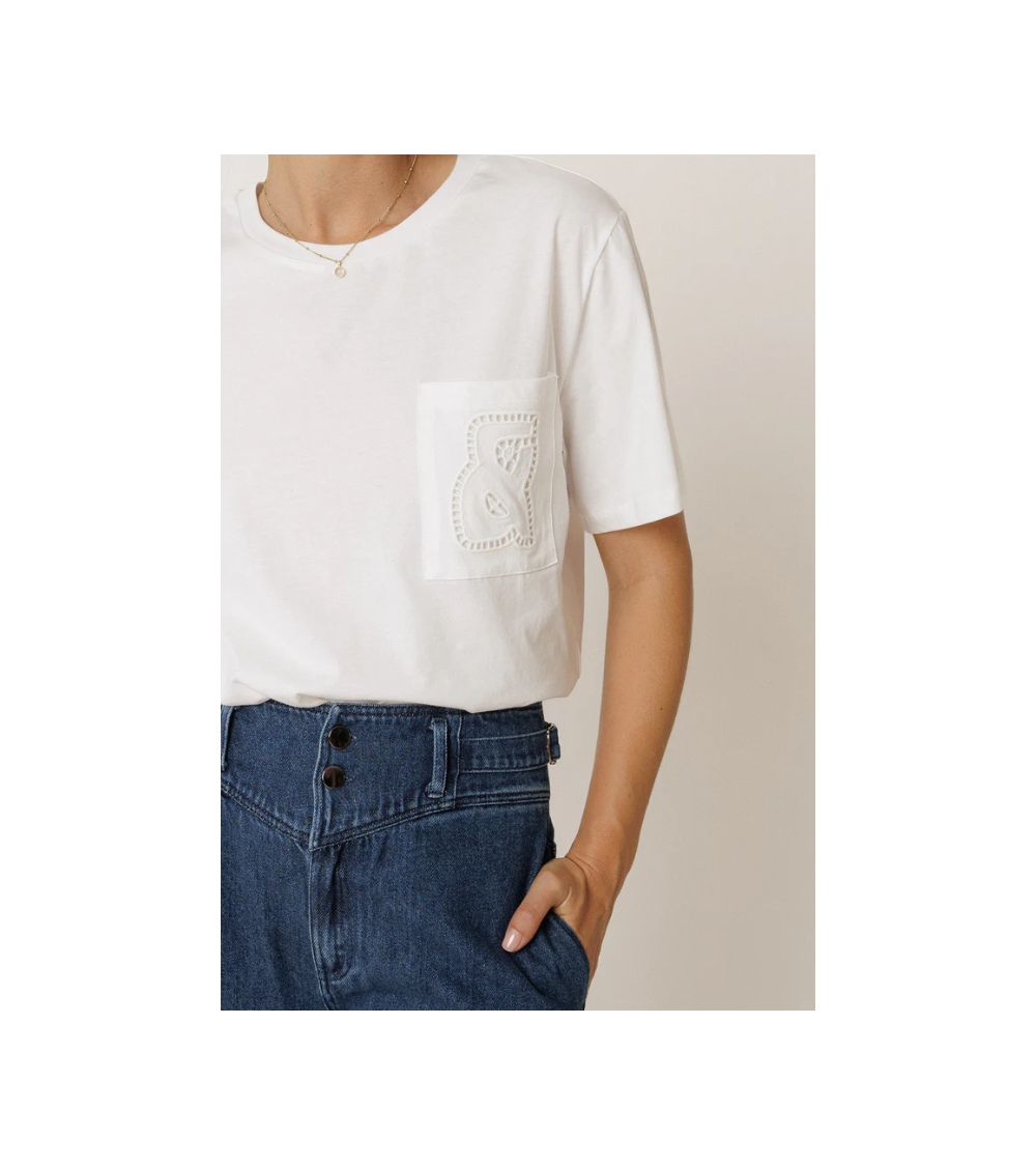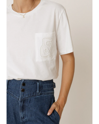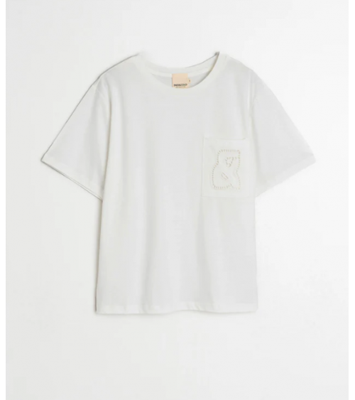 Camiseta blanca hombro caído cuello redondo manga corta bolsillo INDI&COLD