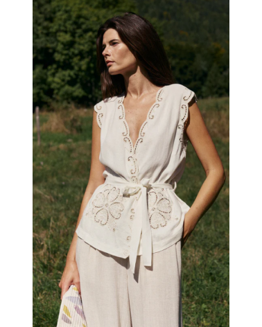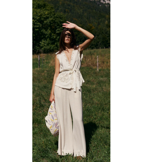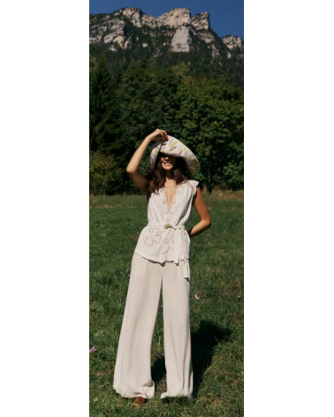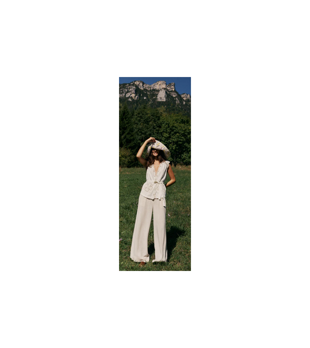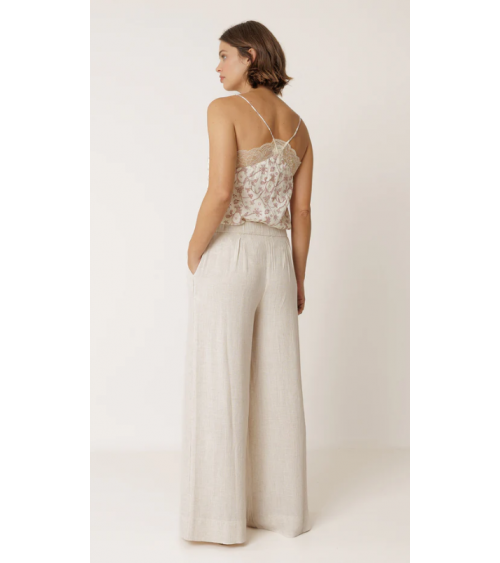 Pantalón lino fluido cinturilla engomada corte relajado INDI&COLD
